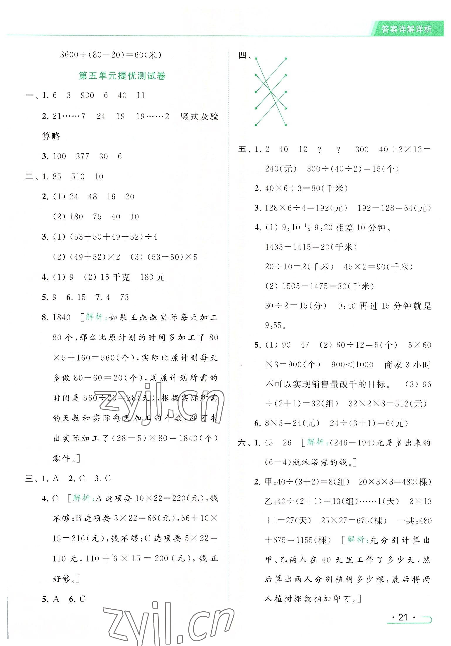 2022年亮点给力提优课时作业本四年级数学上册江苏版参考答案第21页