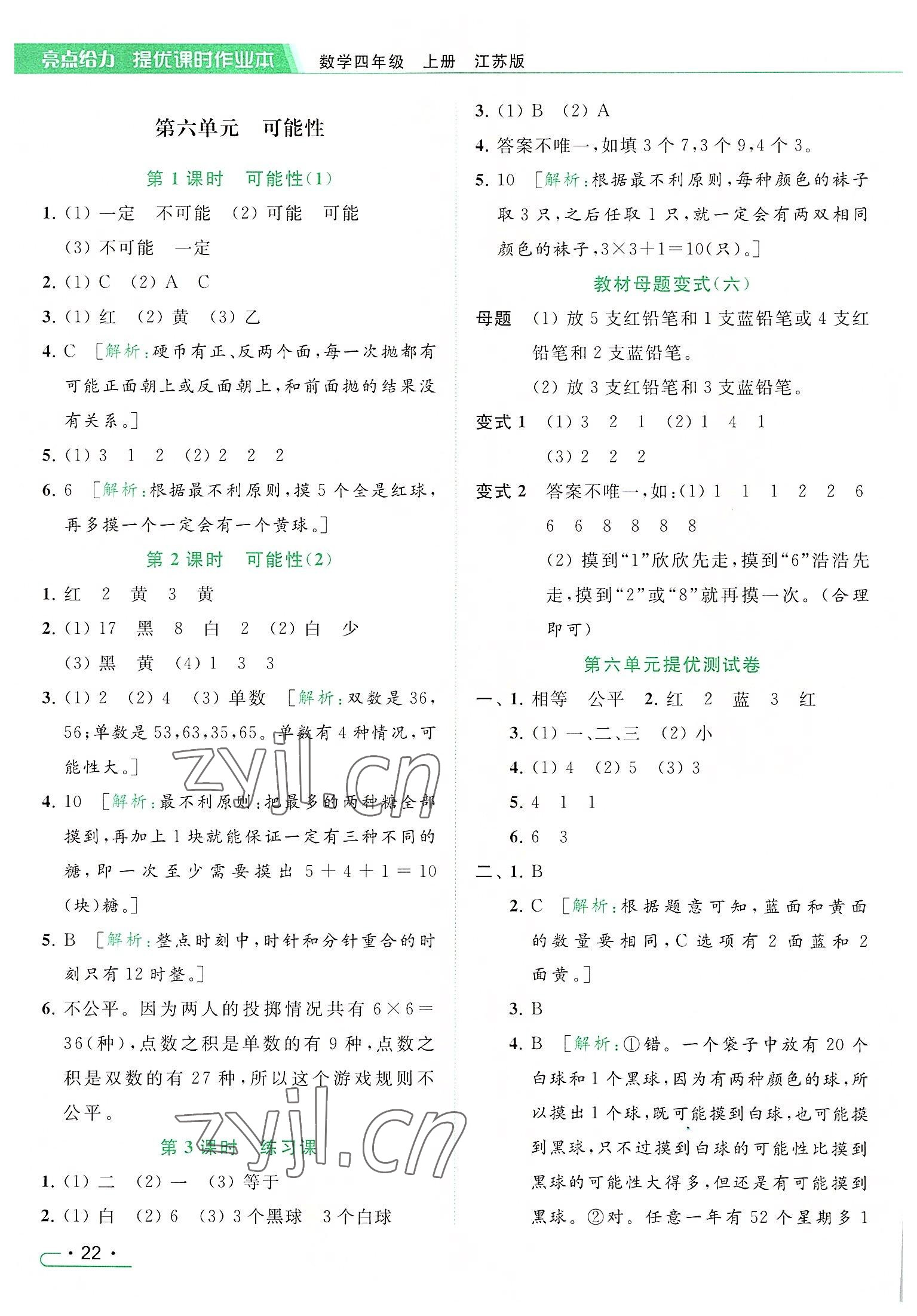 2022年亮点给力提优课时作业本四年级数学上册江苏版参考答案第22页