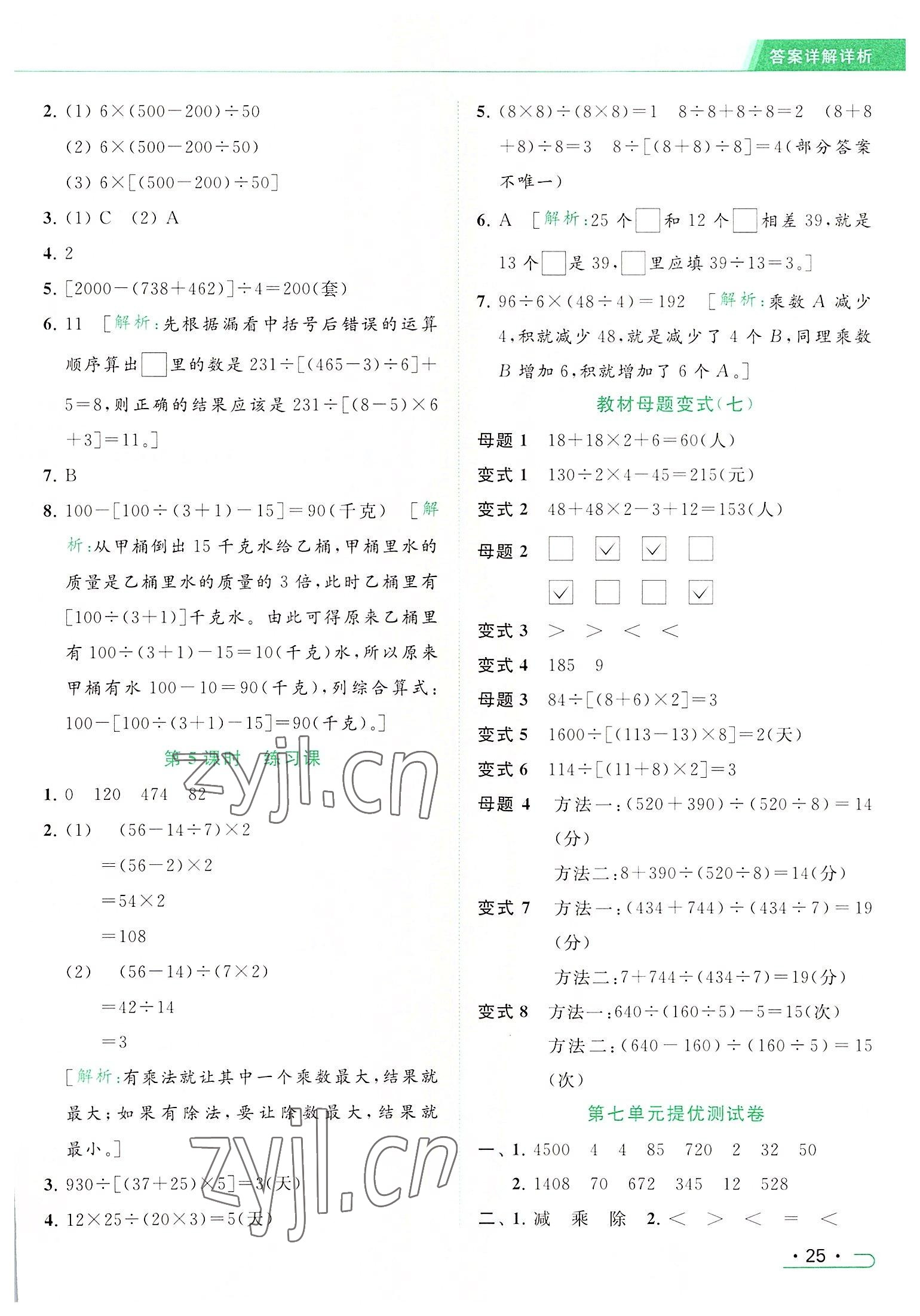 2022年亮点给力提优课时作业本四年级数学上册江苏版参考答案第25页