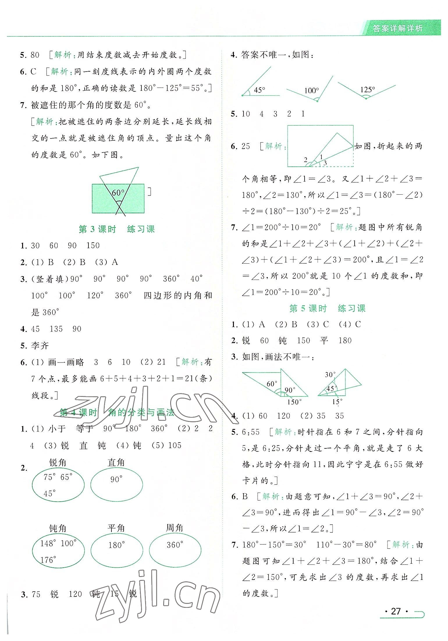2022年亮点给力提优课时作业本四年级数学上册江苏版参考答案第27页