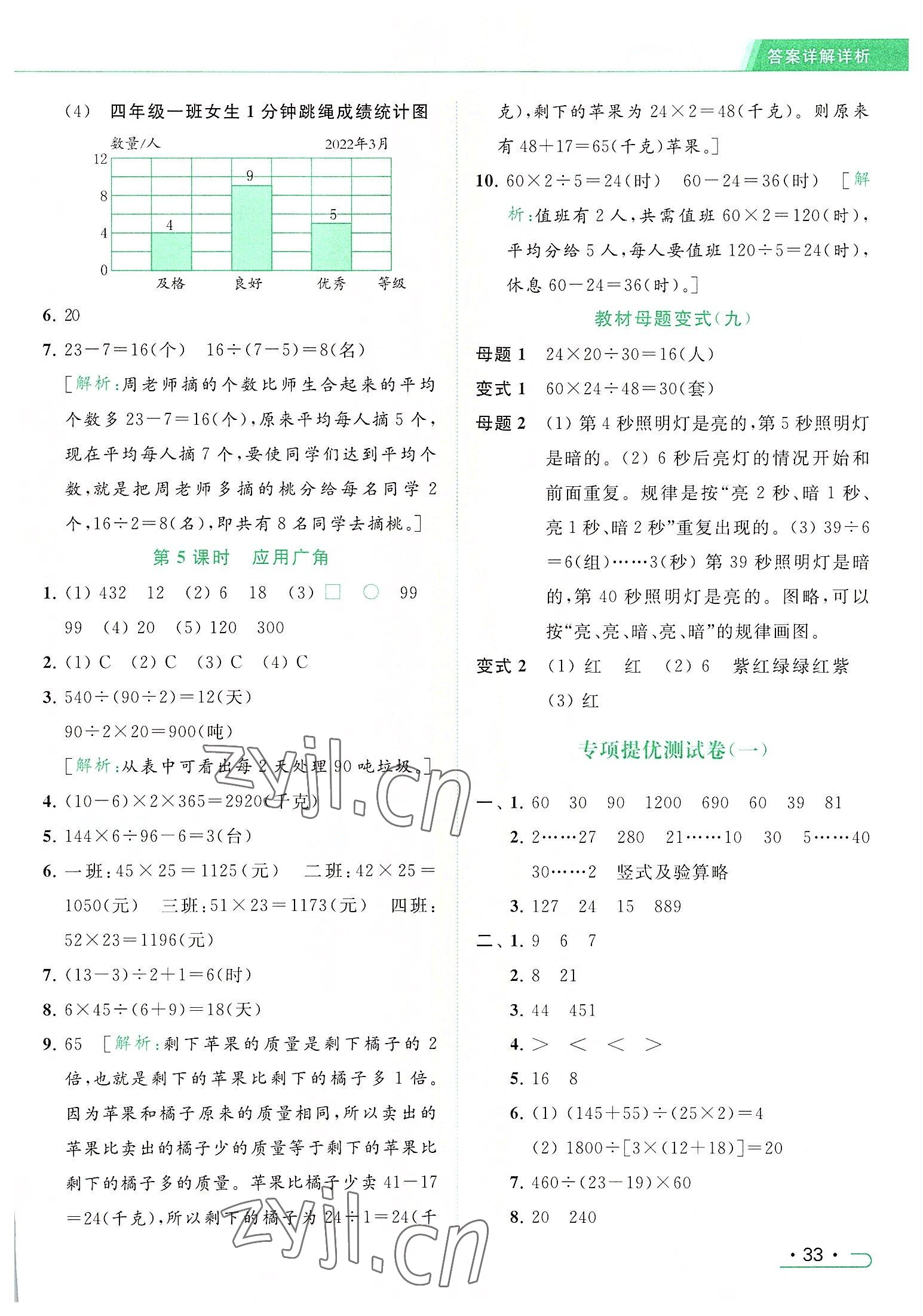 2022年亮点给力提优课时作业本四年级数学上册江苏版参考答案第33页