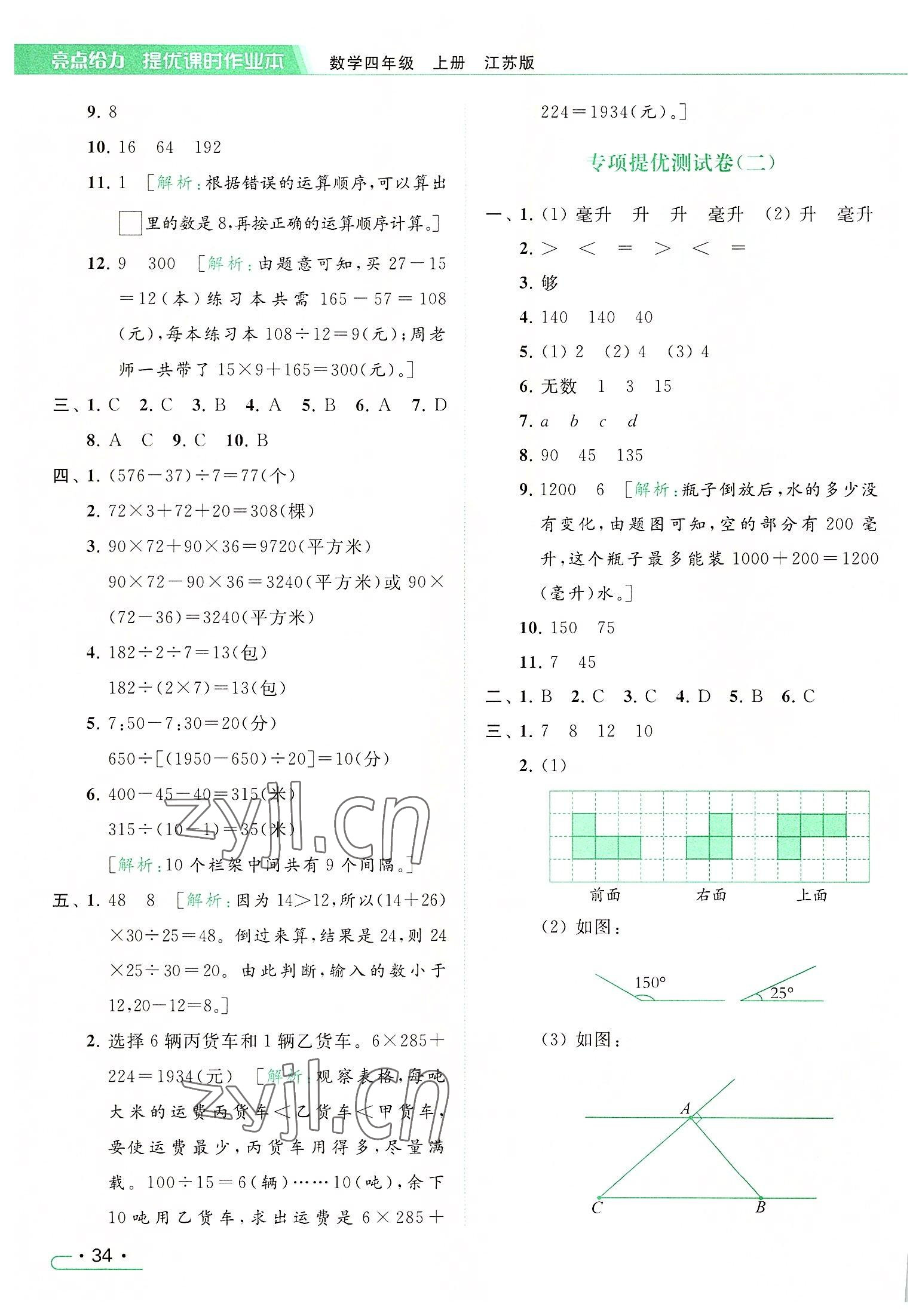 2022年亮点给力提优课时作业本四年级数学上册江苏版参考答案第34页