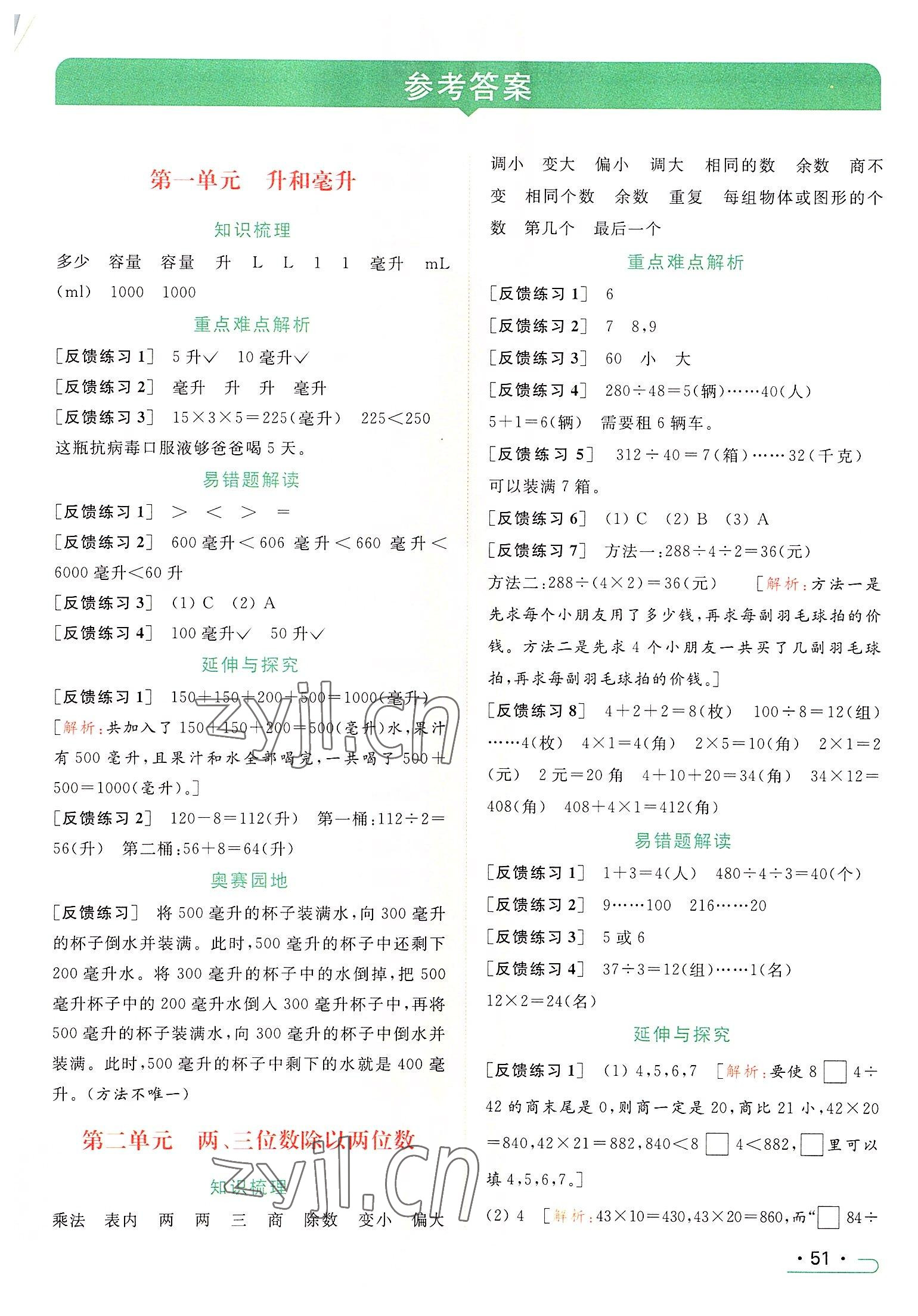 2022年亮点给力提优课时作业本四年级数学上册江苏版参考答案第39页