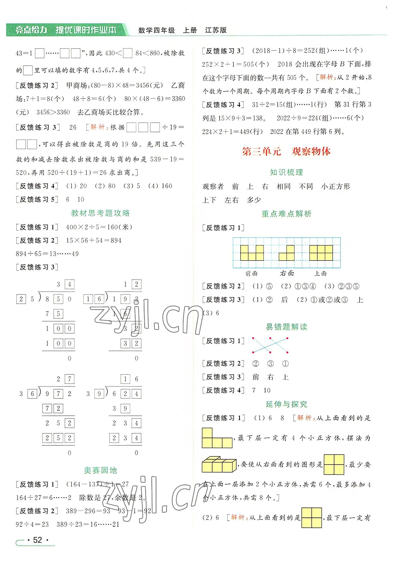 2022年亮点给力提优课时作业本四年级数学上册江苏版参考答案第40页