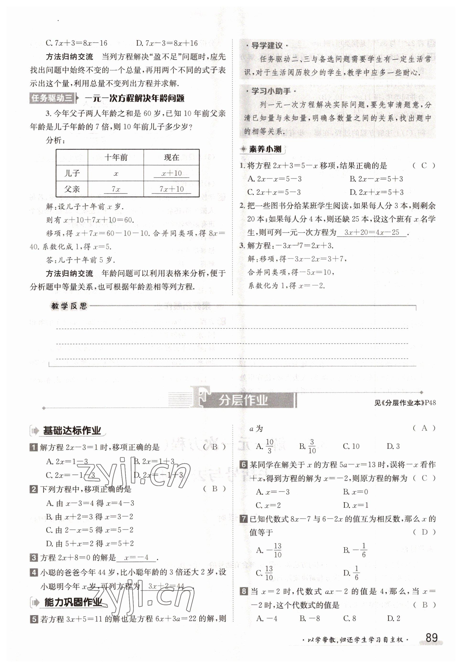 2022年金太阳导学案七年级数学上册人教版参考答案第89页