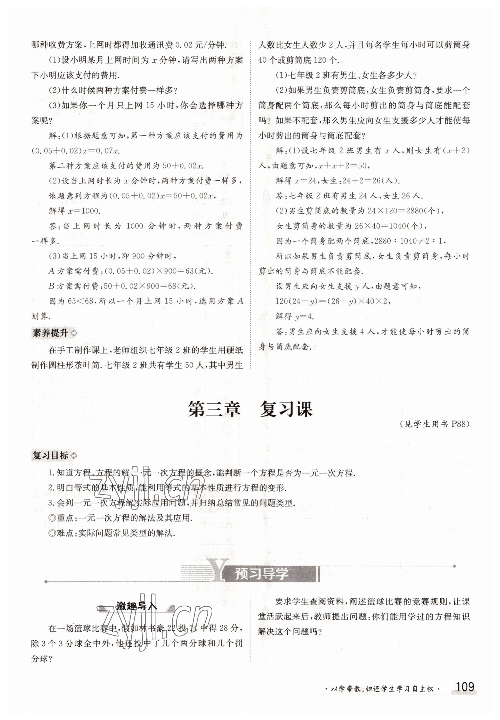 2022年金太阳导学案七年级数学上册人教版参考答案第109页