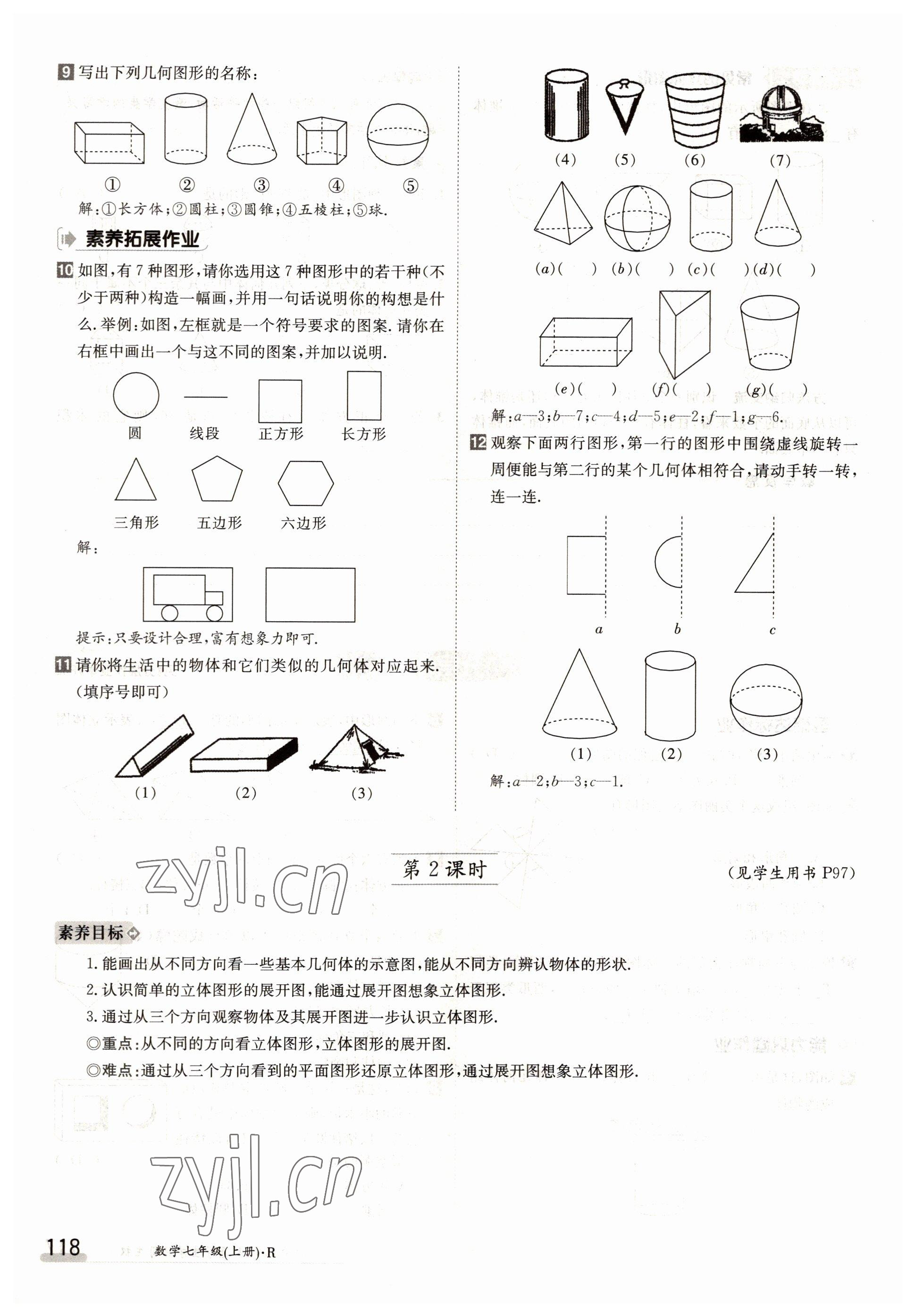 2022年金太阳导学案七年级数学上册人教版参考答案第118页