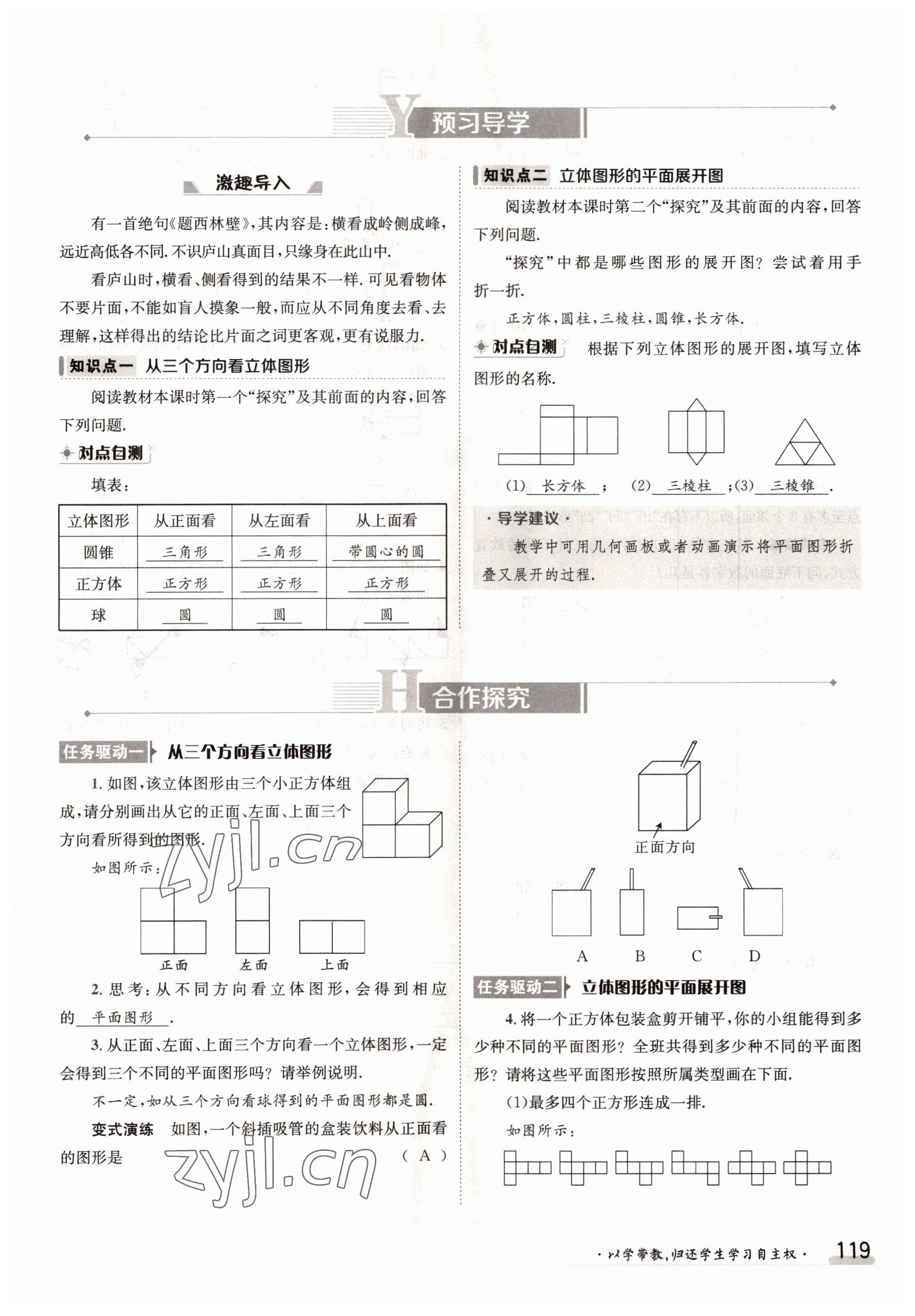 2022年金太阳导学案七年级数学上册人教版参考答案第119页