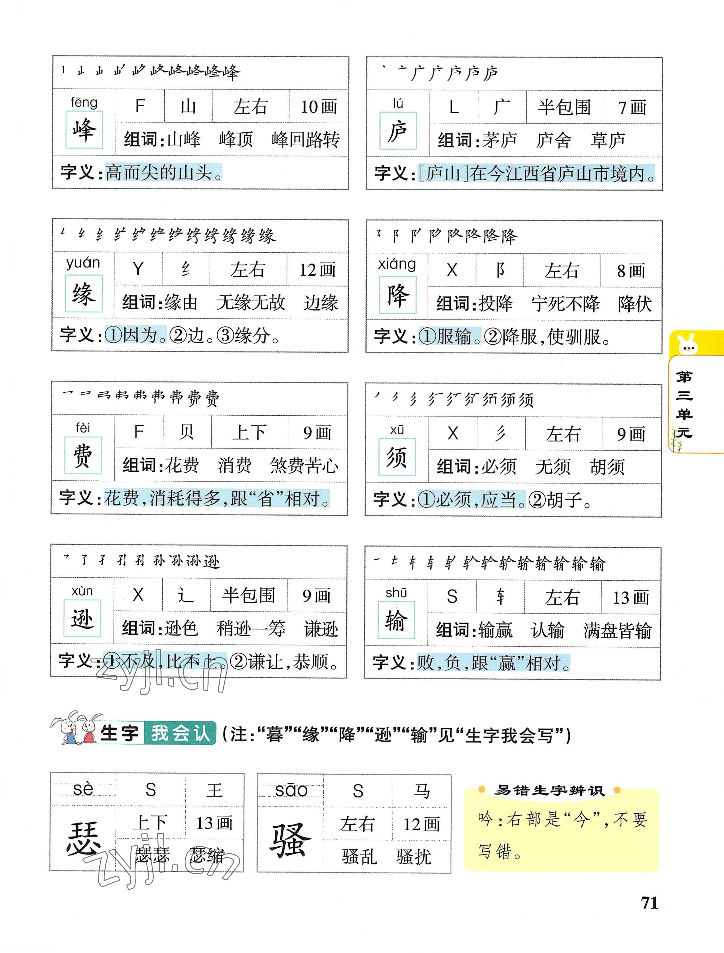 2022年教材课本四年级语文上册人教版参考答案第71页