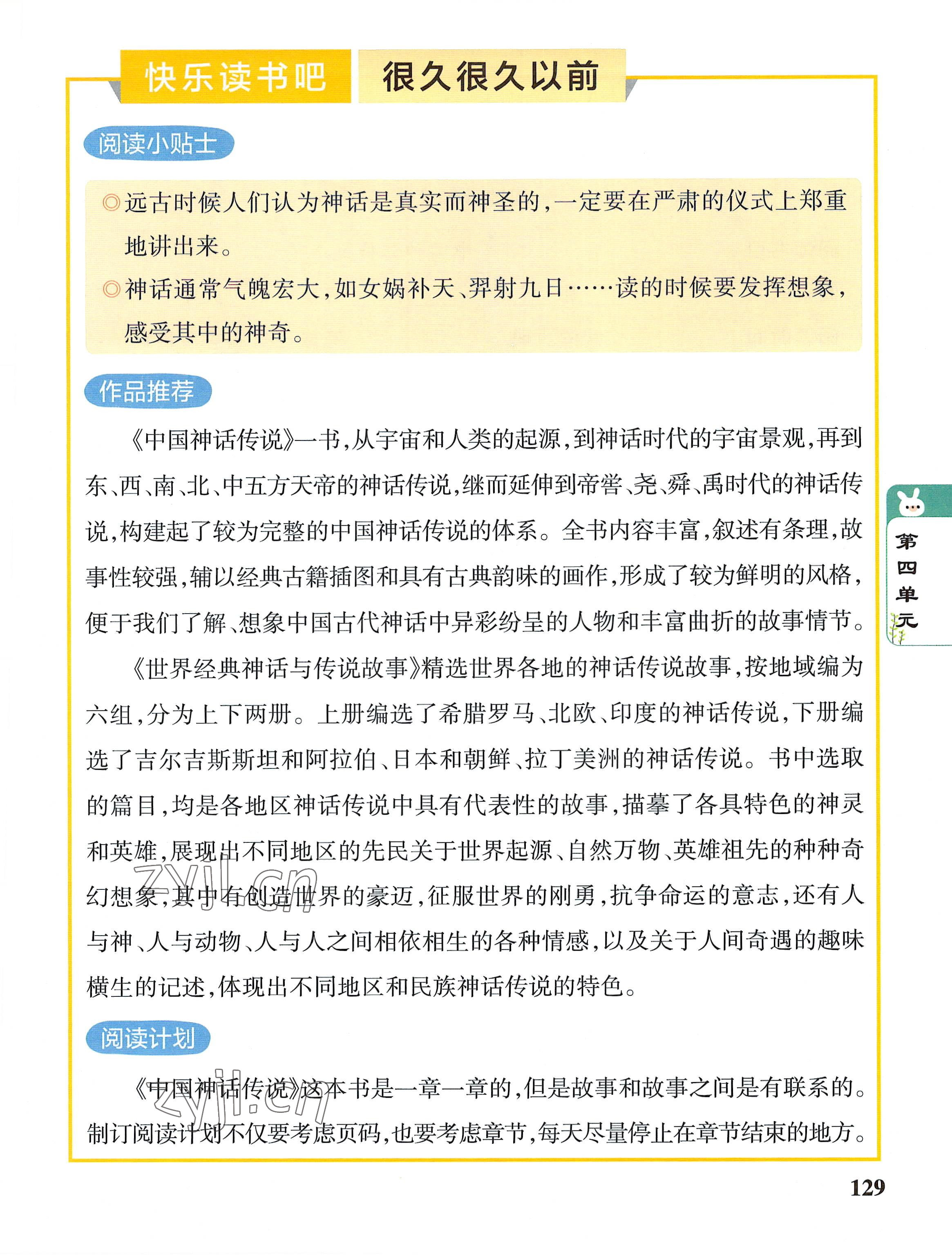 2022年教材课本四年级语文上册人教版参考答案第129页