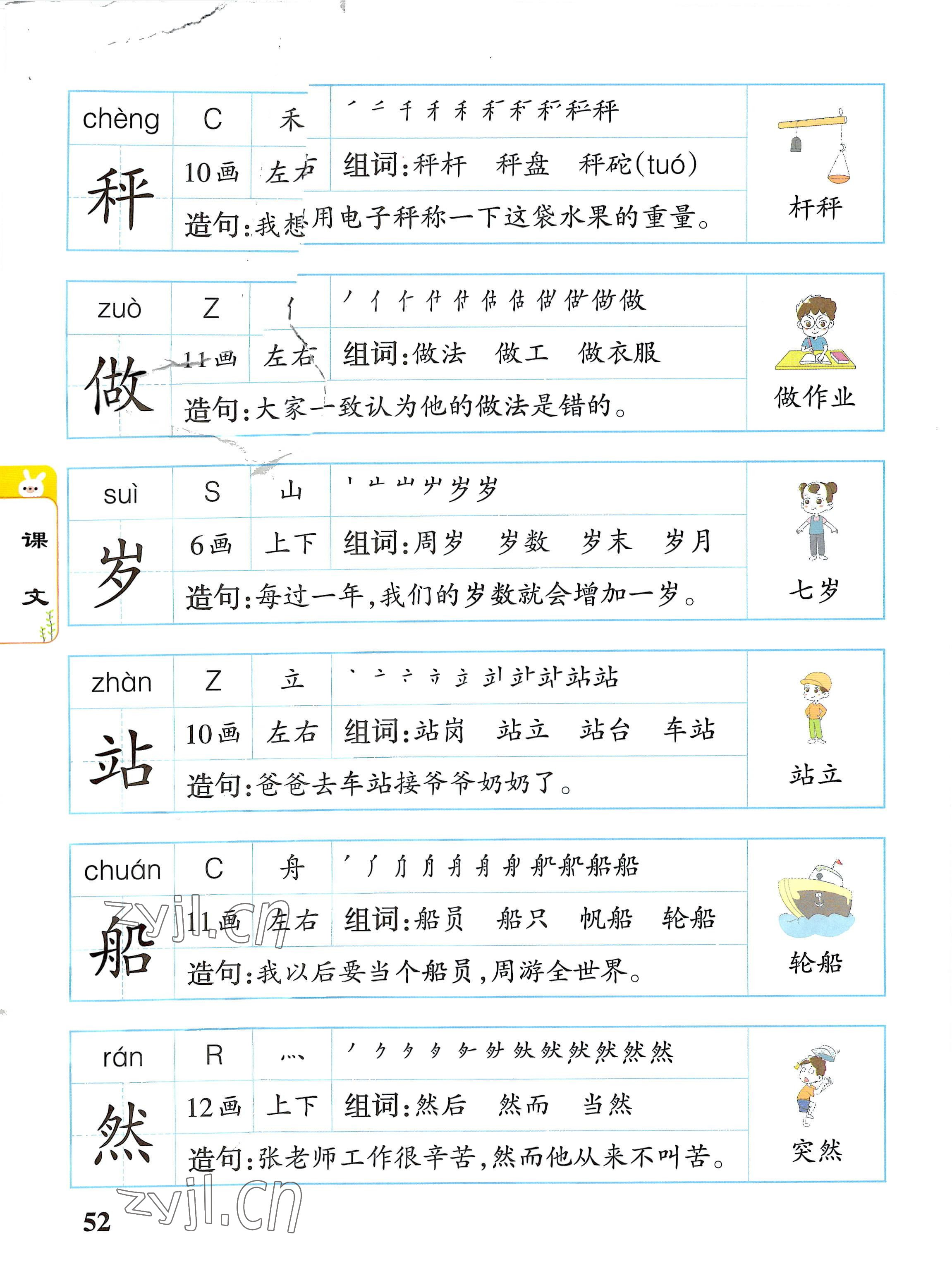 2022年教材课本二年级语文上册人教版参考答案第52页