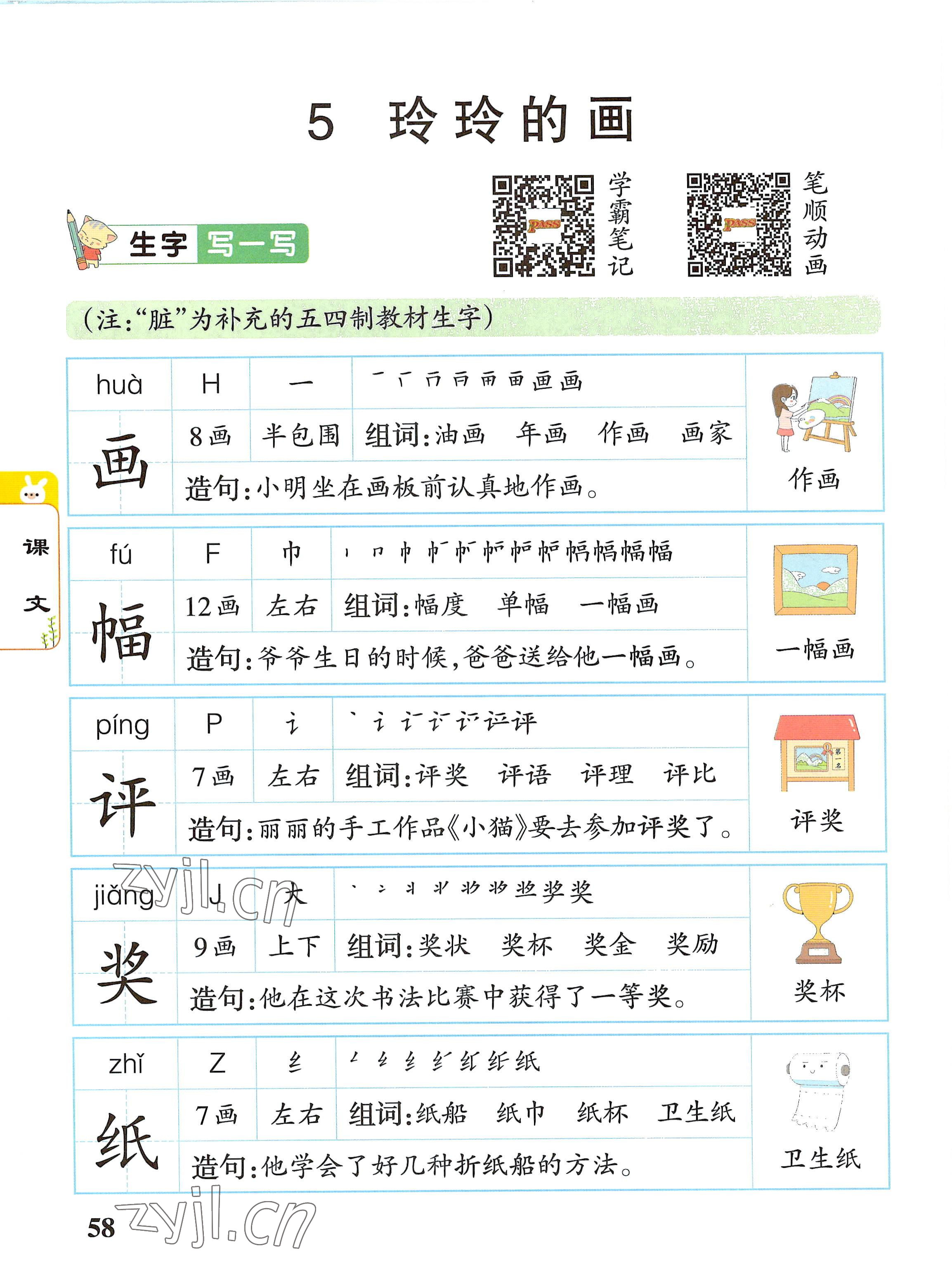2022年教材课本二年级语文上册人教版参考答案第58页