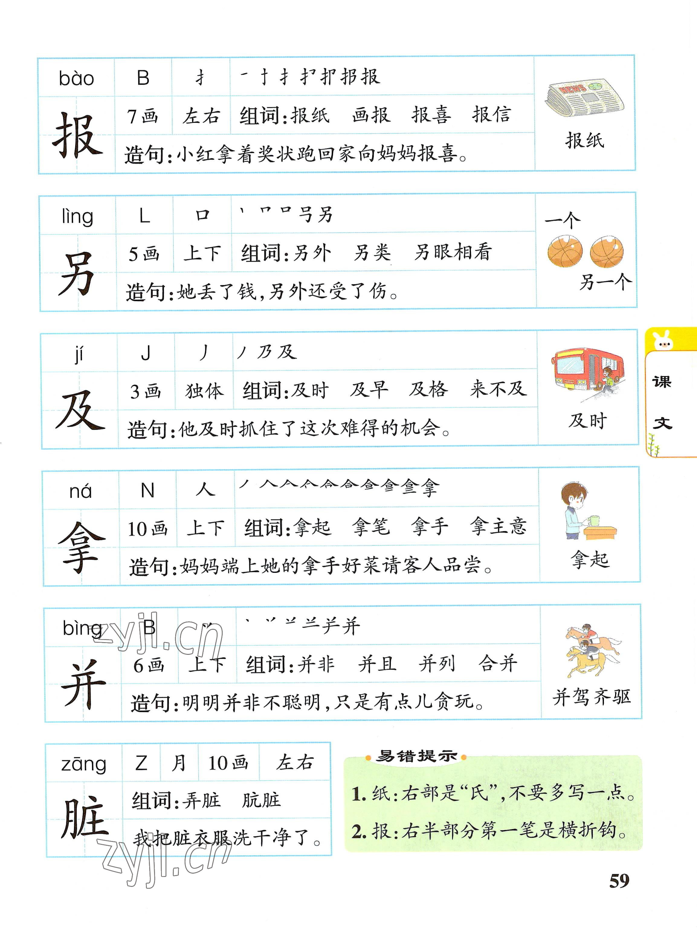 2022年教材课本二年级语文上册人教版参考答案第59页
