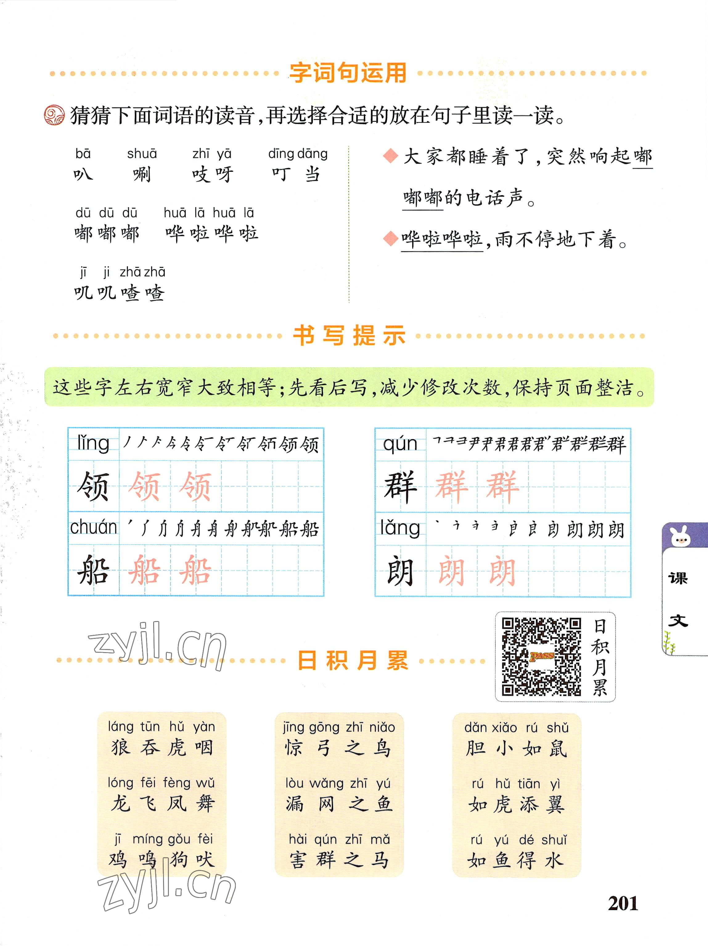 2022年教材课本二年级语文上册人教版参考答案第201页
