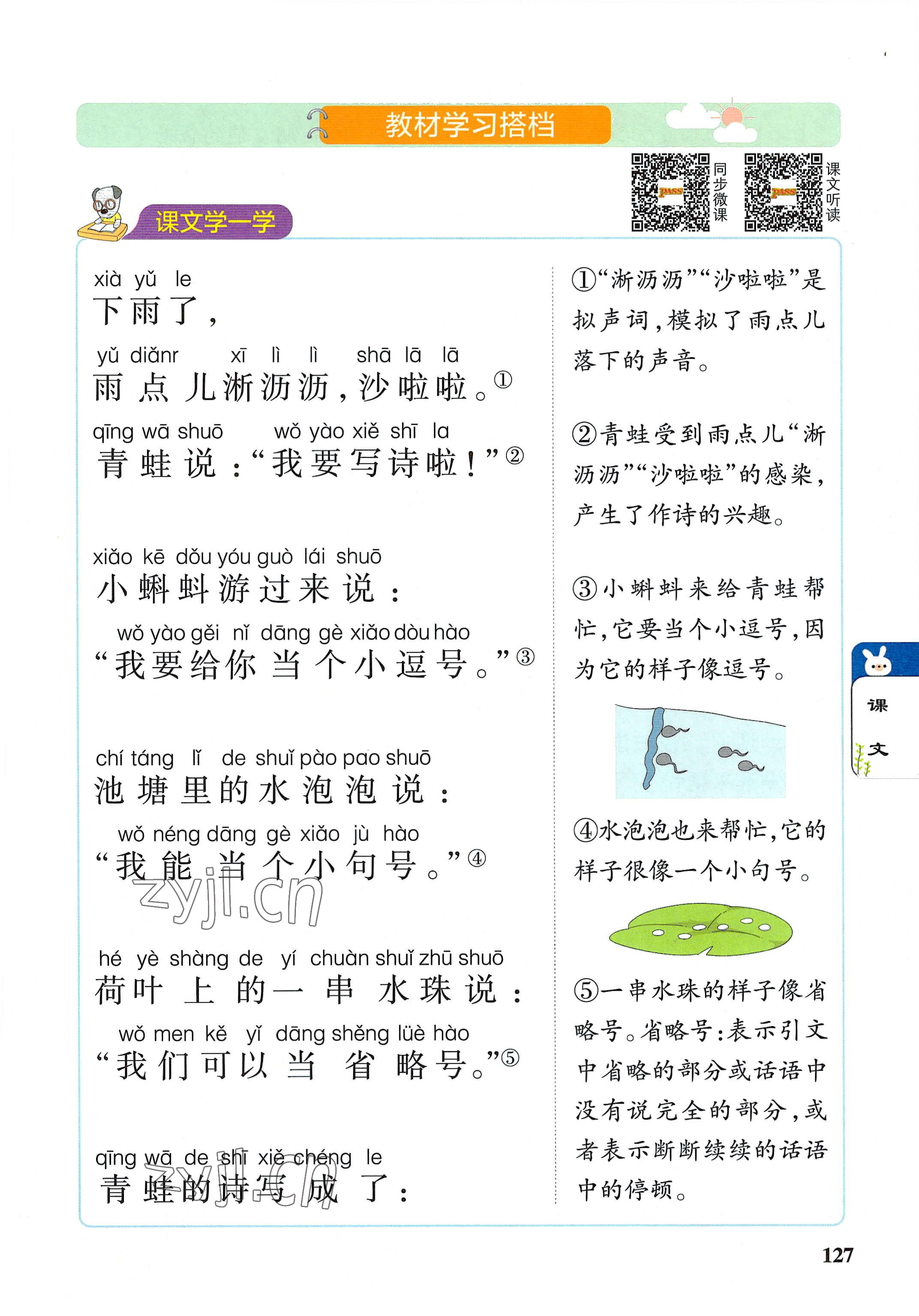 2022年教材课本一年级语文上册人教版参考答案第127页