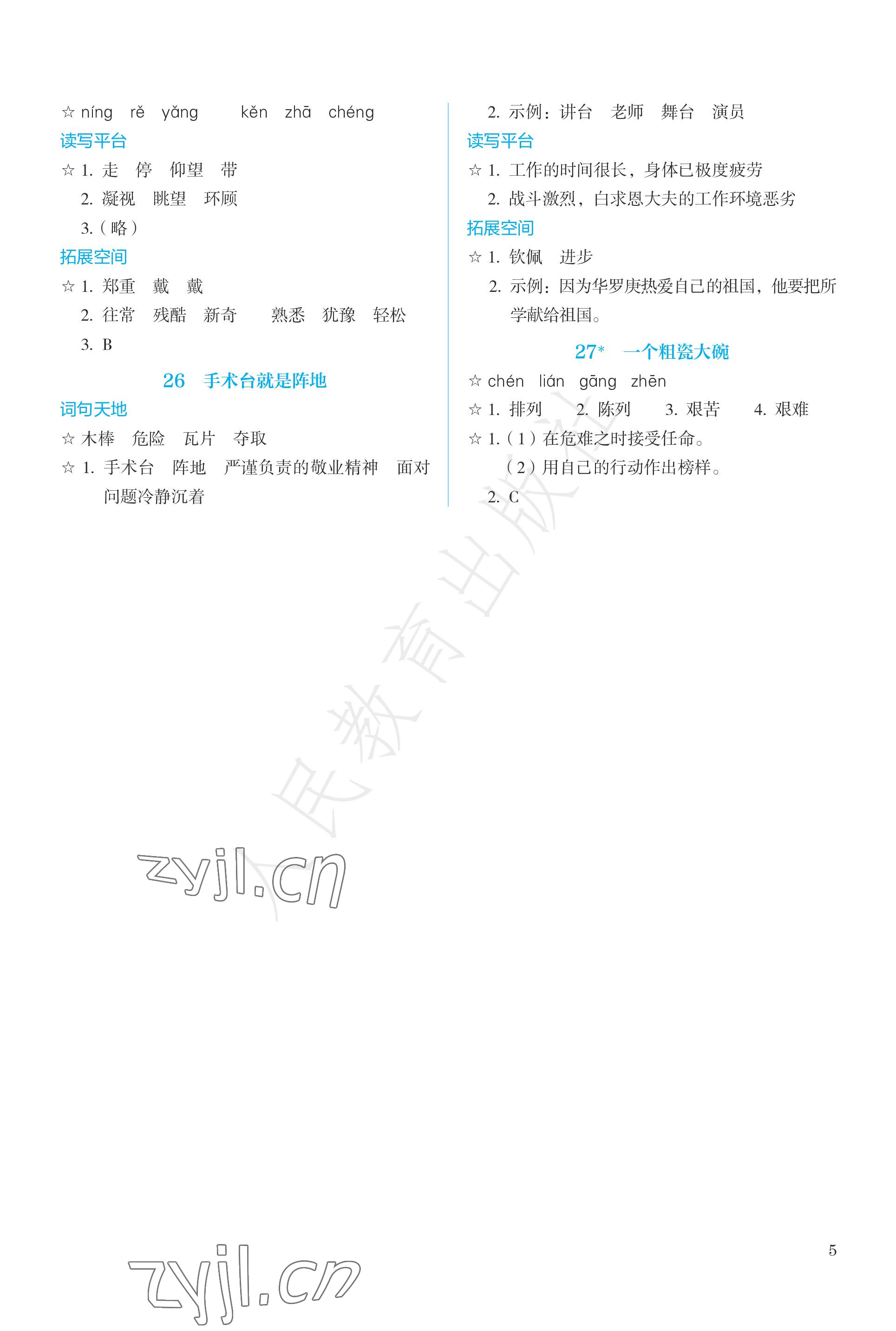 2022年人教金学典同步解析与测评三年级语文上册人教版参考答案第5页