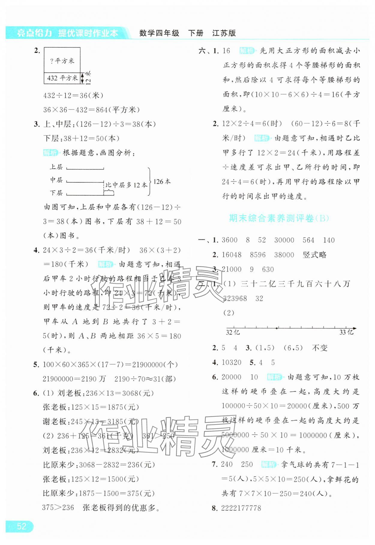 2024年亮点给力提优课时作业本四年级数学下册江苏版参考答案第52页