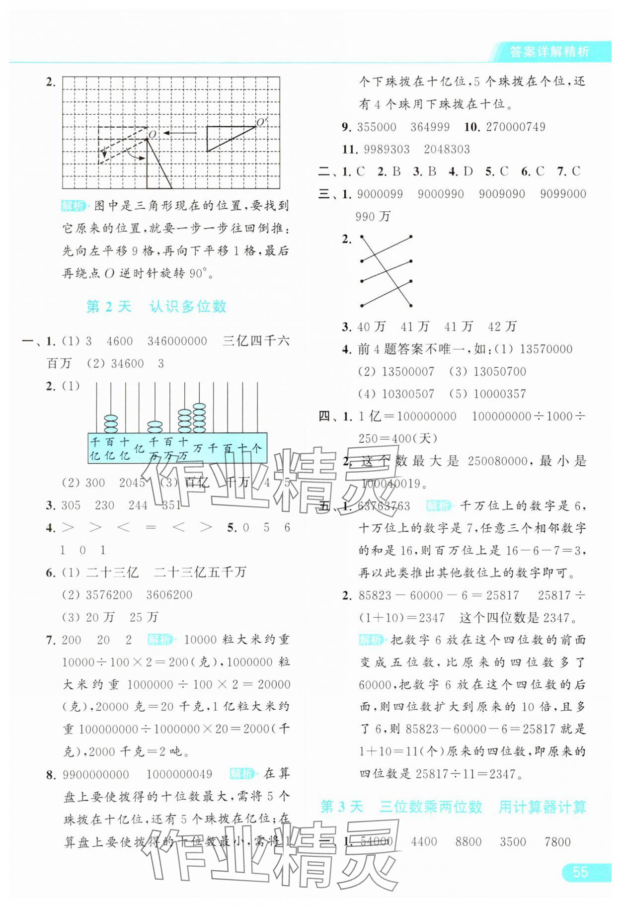 2024年亮点给力提优课时作业本四年级数学下册江苏版参考答案第55页