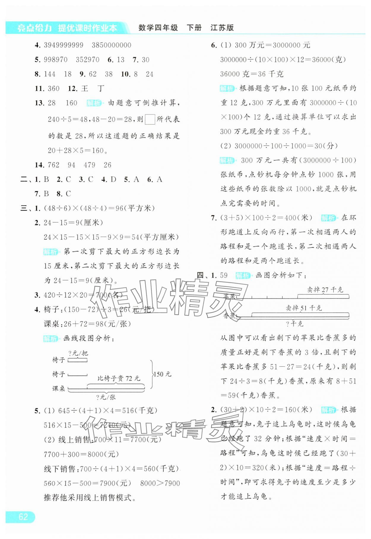 2024年亮点给力提优课时作业本四年级数学下册江苏版参考答案第62页