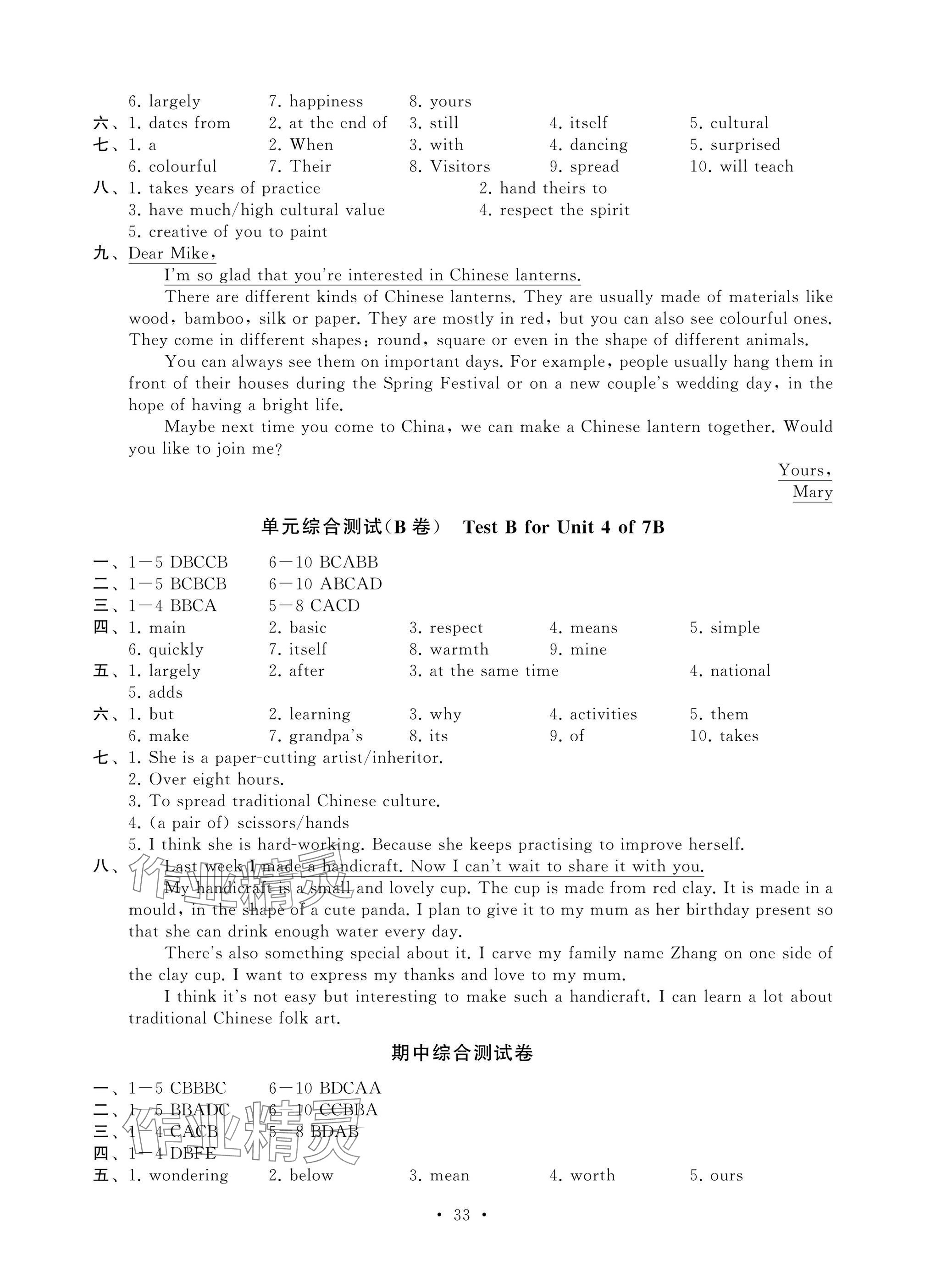 2025年综合素质随堂反馈七年级英语下册译林版常州专版参考答案第33页