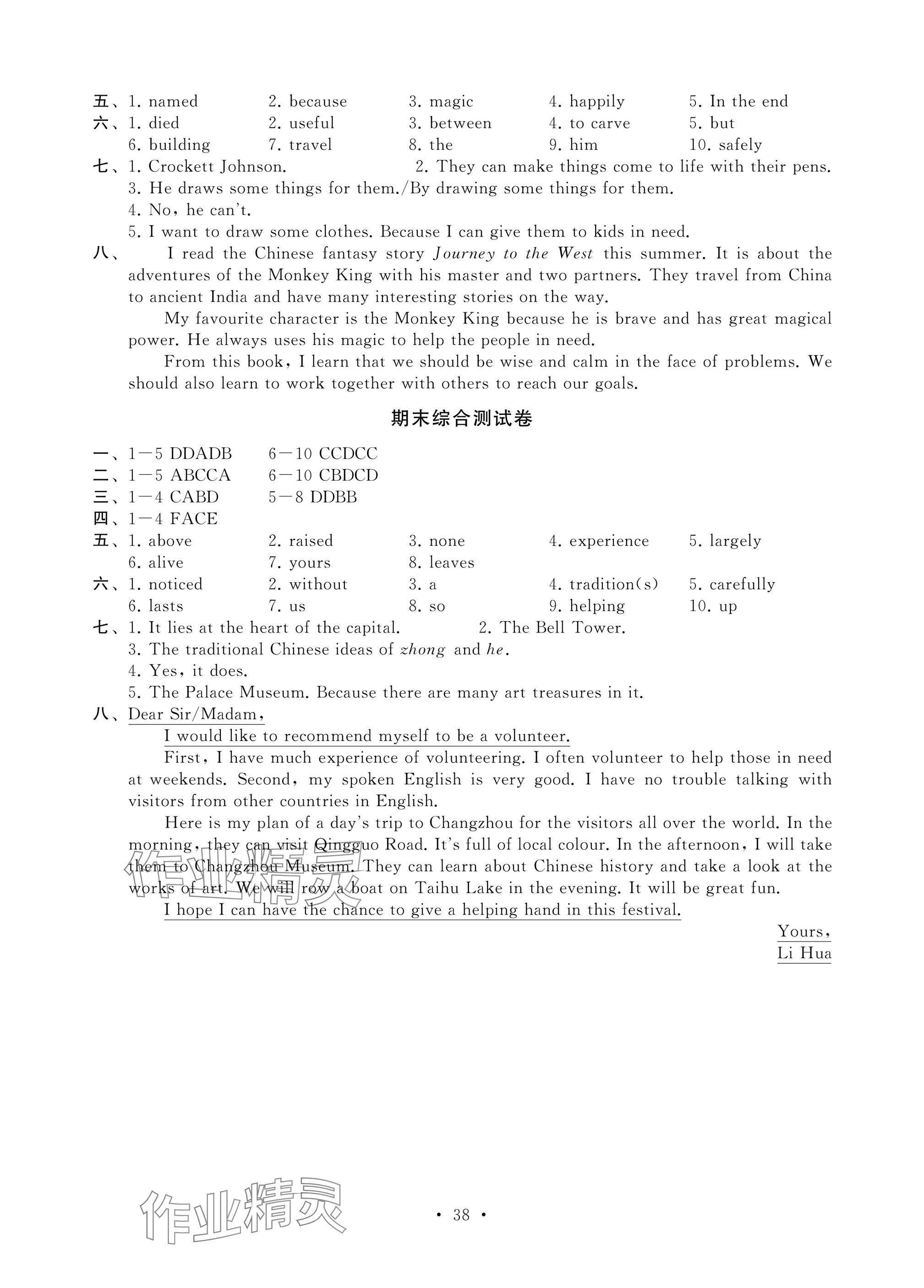 2025年综合素质随堂反馈七年级英语下册译林版常州专版参考答案第38页