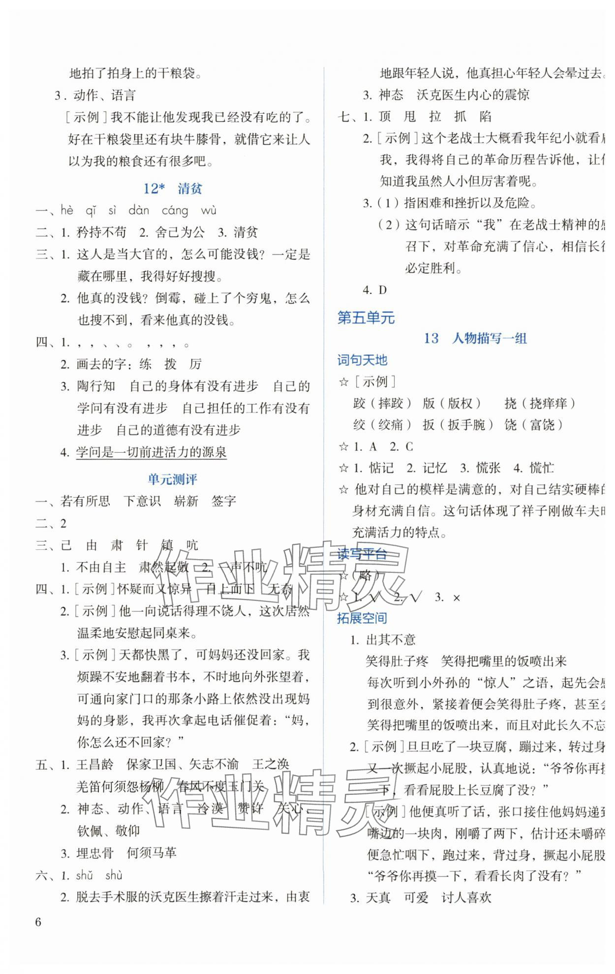 2025年人教金学典同步解析与测评五年级语文下册人教版第6页