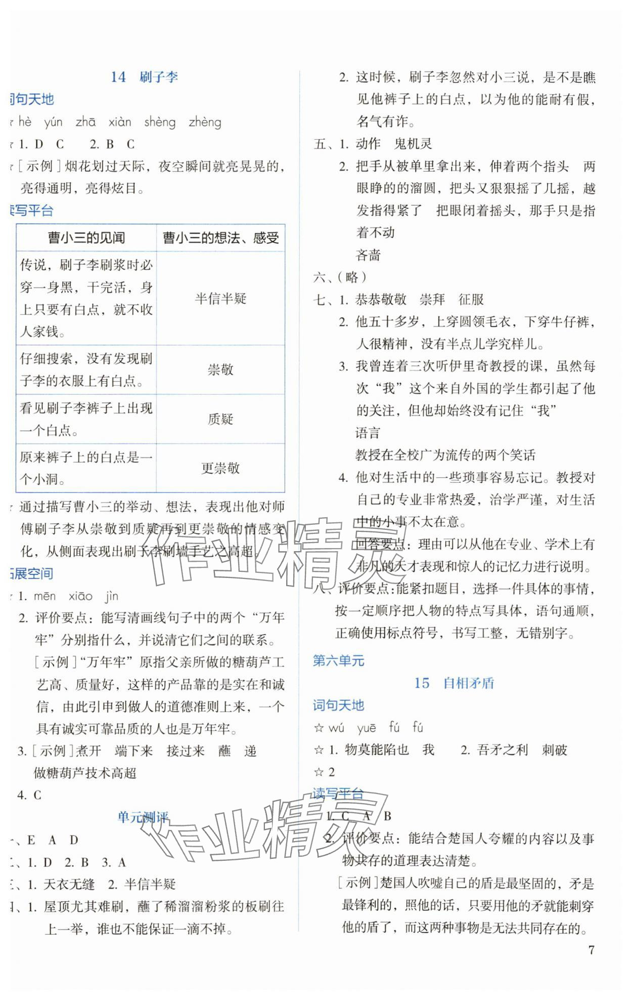 2025年人教金学典同步解析与测评五年级语文下册人教版第7页