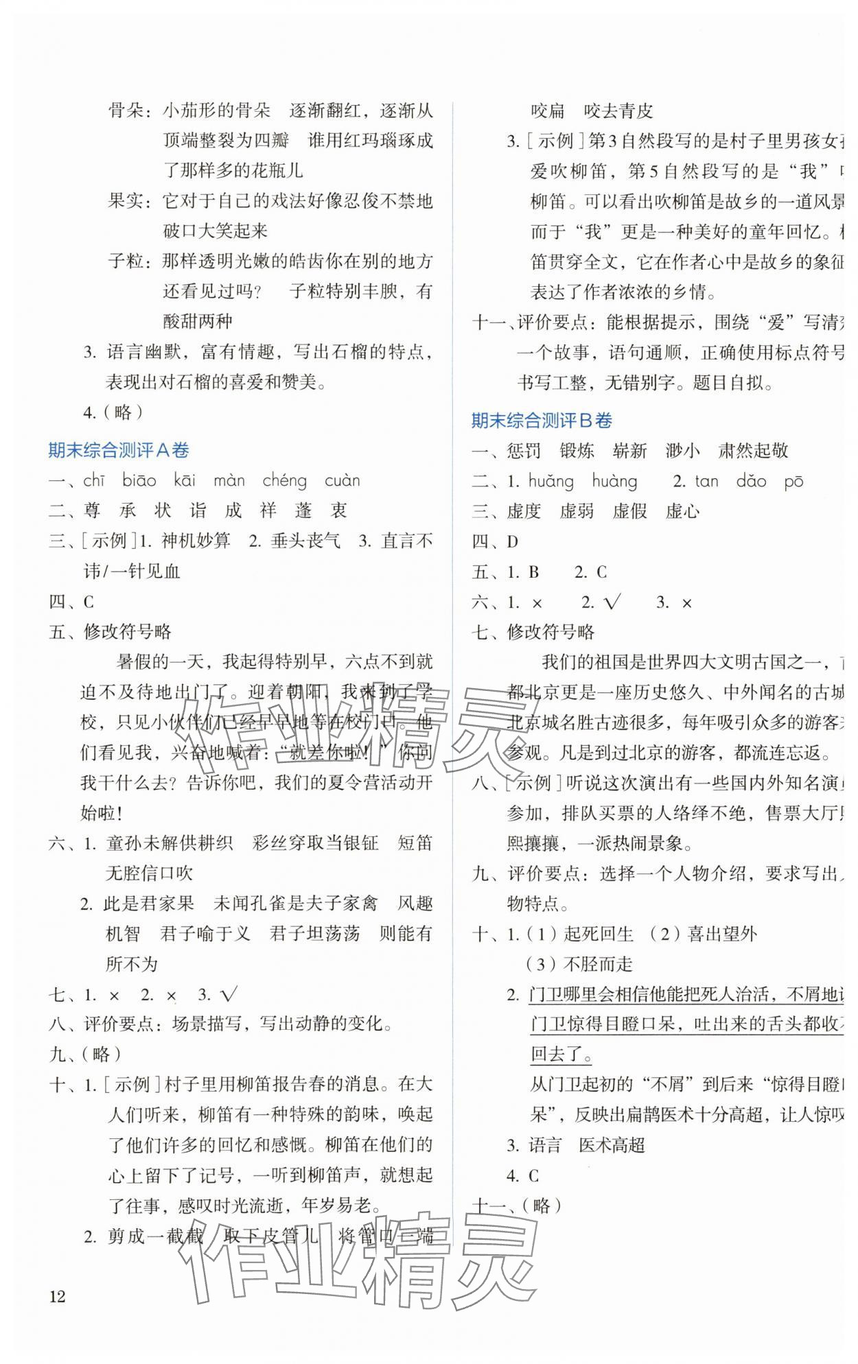 2025年人教金学典同步解析与测评五年级语文下册人教版第12页