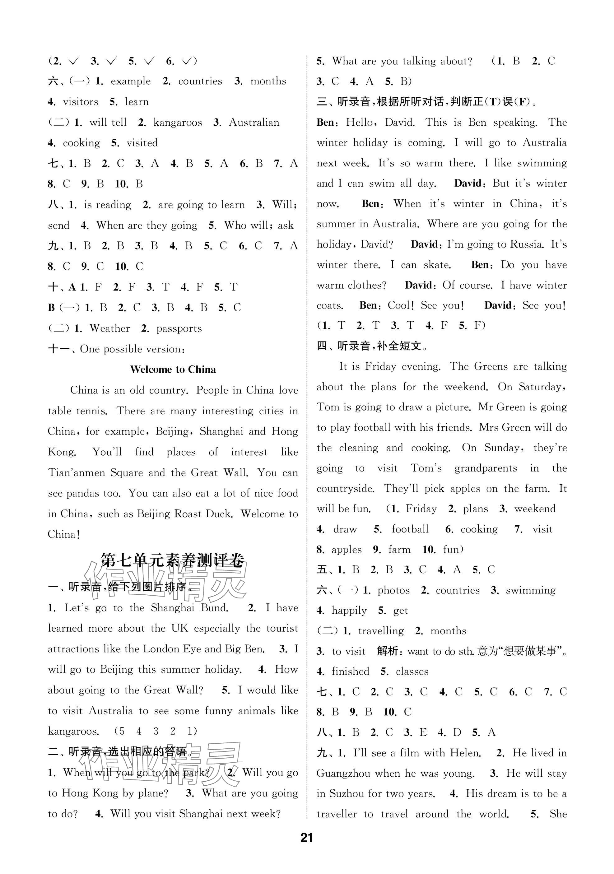 2025年课时作业本阅读与闯关六年级英语下册译林版参考答案第21页