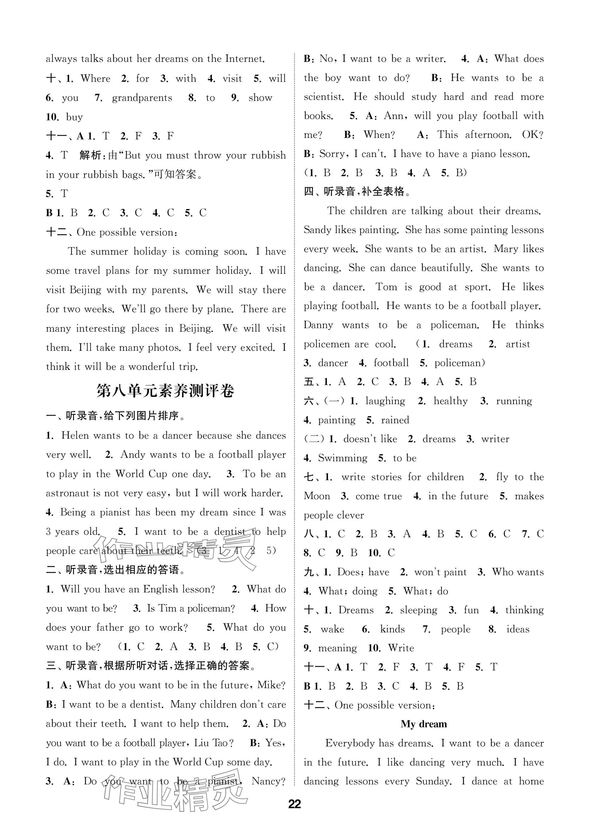 2025年课时作业本阅读与闯关六年级英语下册译林版参考答案第22页