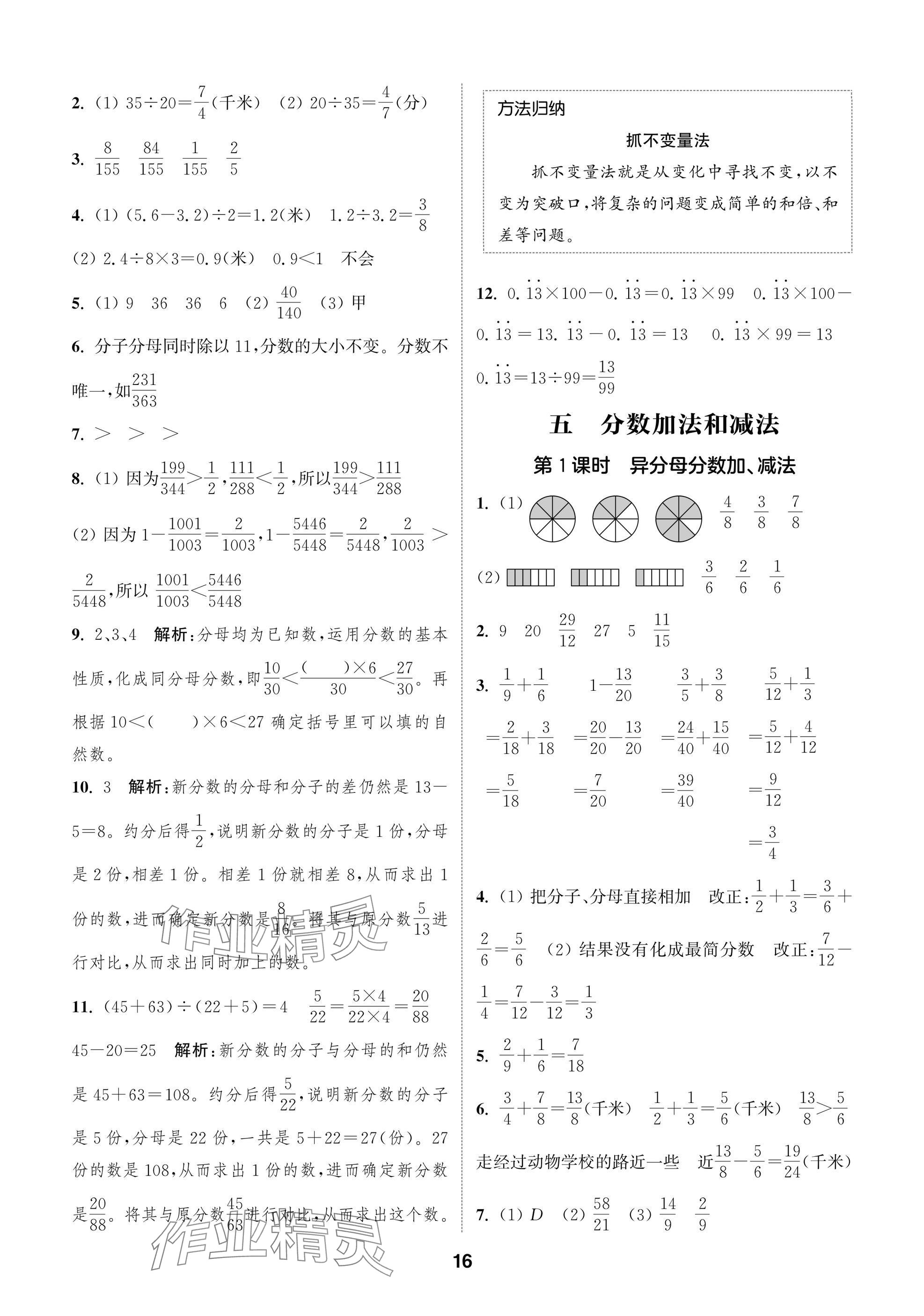 2025年课时作业本阅读与闯关五年级数学下册苏教版第16页
