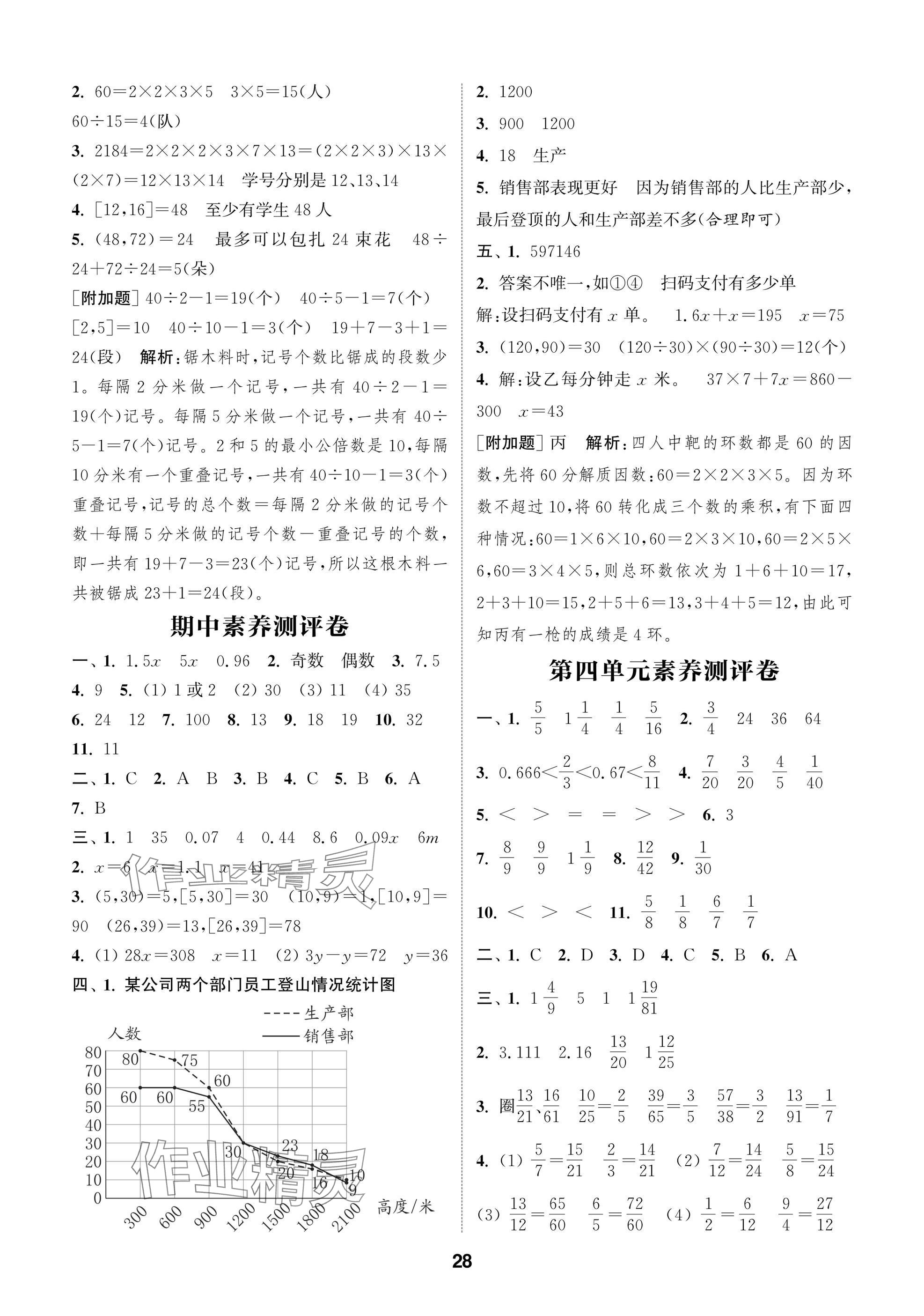 2025年课时作业本阅读与闯关五年级数学下册苏教版第28页