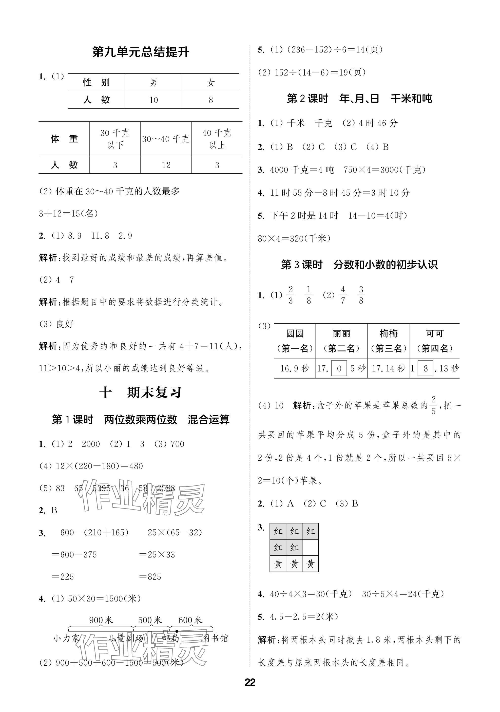 2025年课时作业本阅读与闯关三年级数学下册苏教版第22页