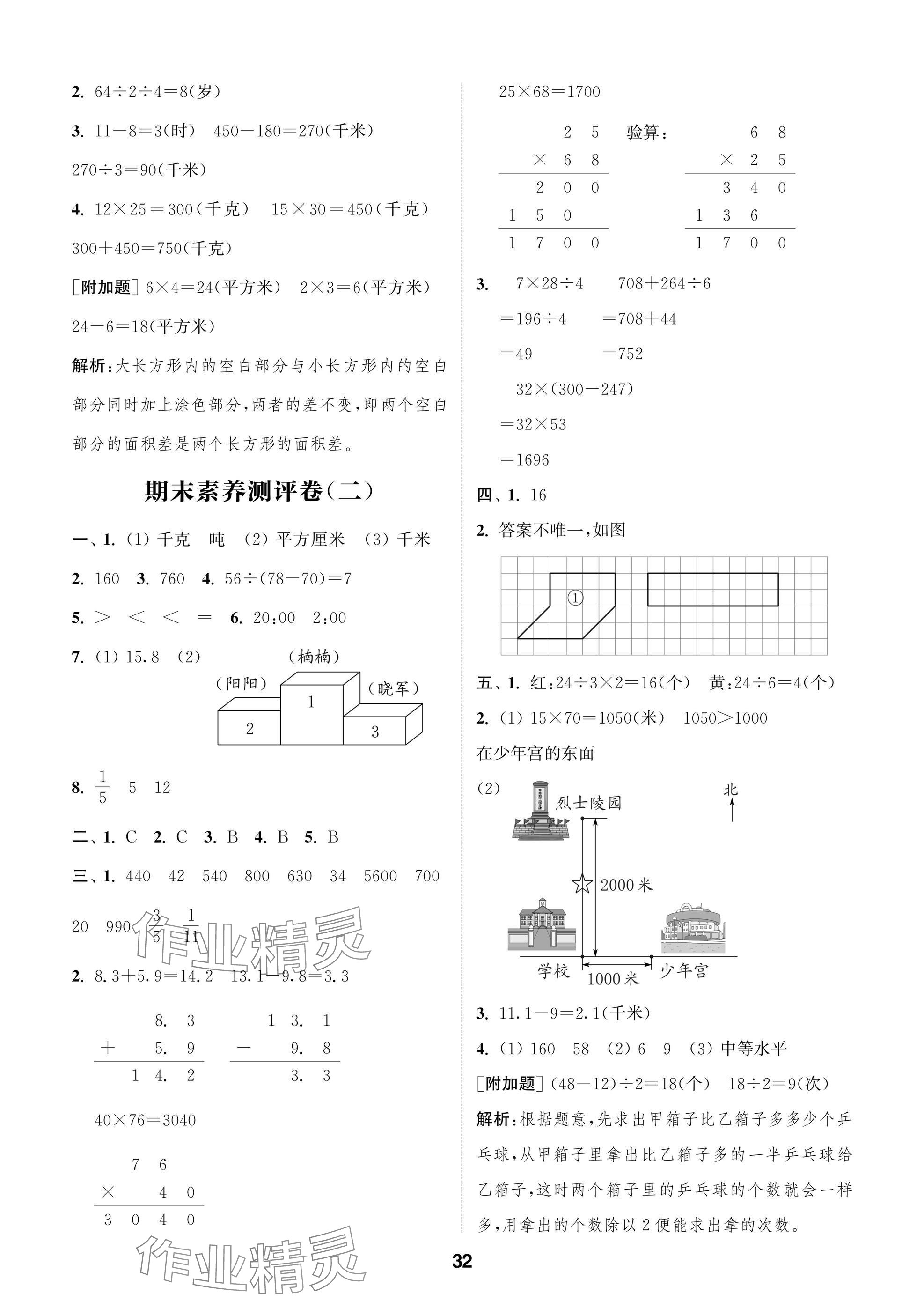 2025年课时作业本阅读与闯关三年级数学下册苏教版第32页