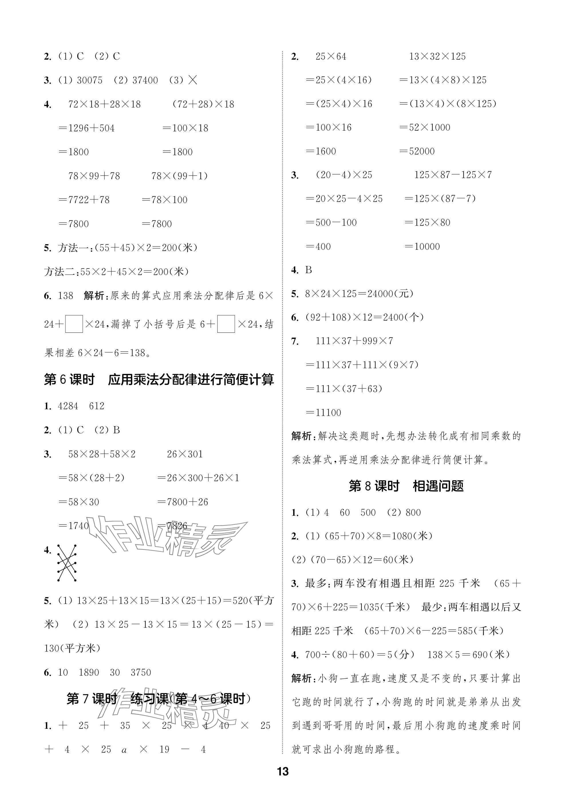 2025年课时作业本阅读与闯关四年级数学下册苏教版第13页