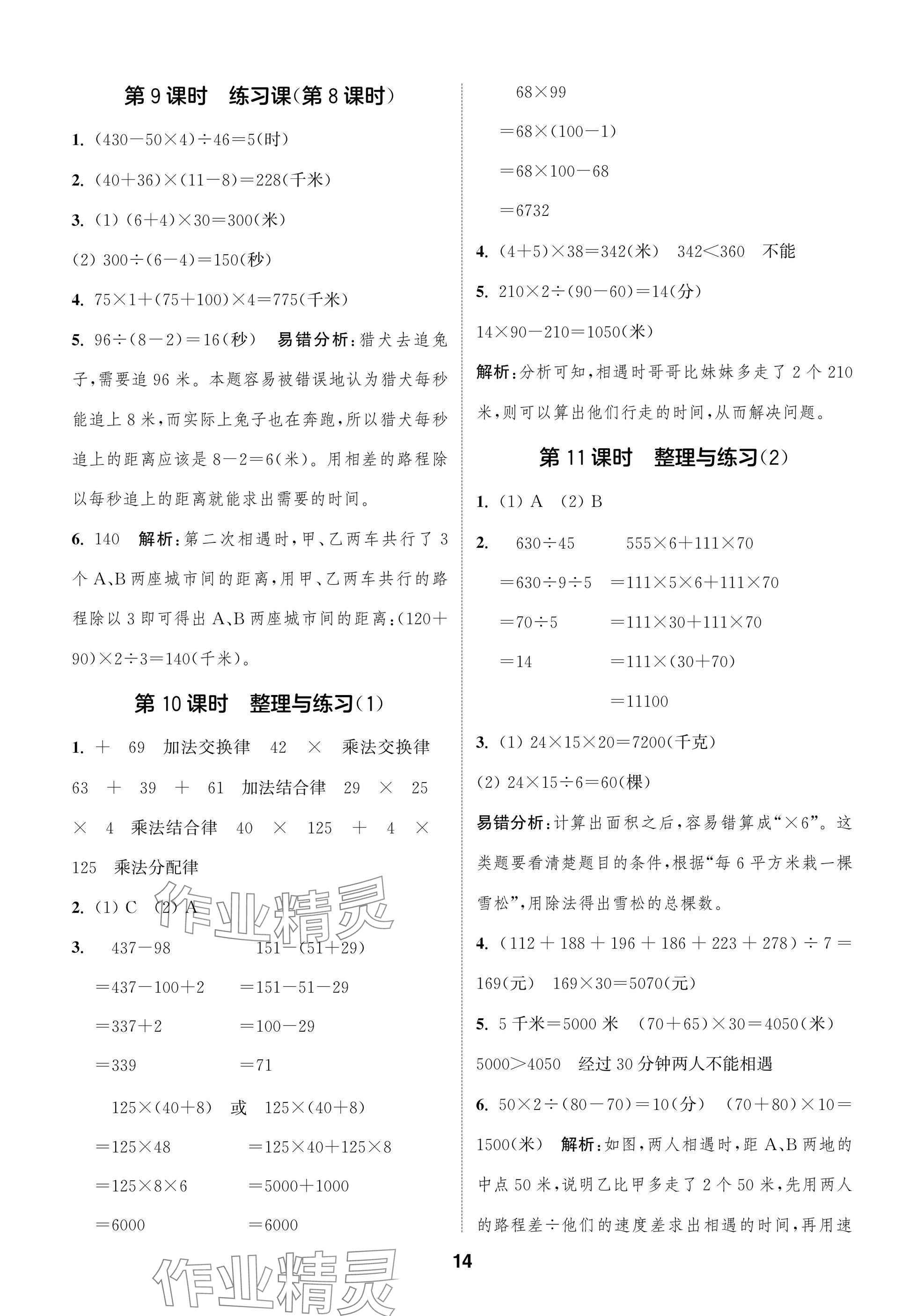 2025年课时作业本阅读与闯关四年级数学下册苏教版第14页