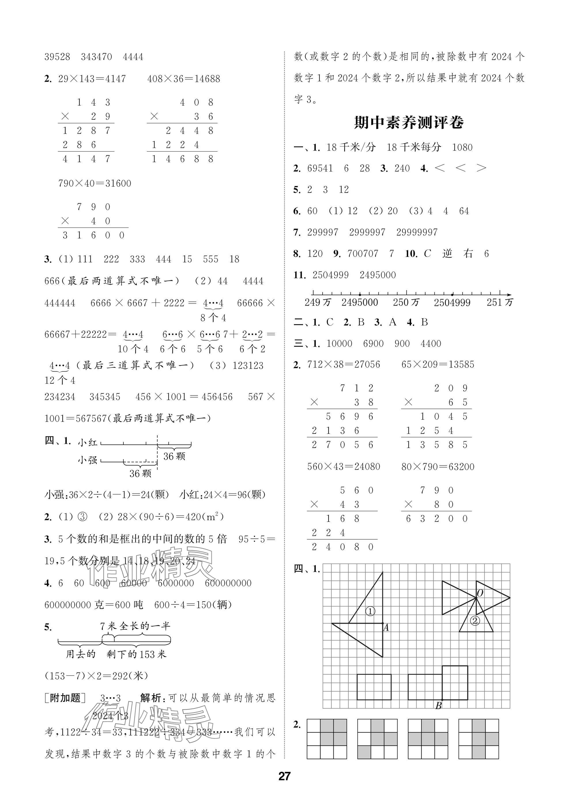 2025年课时作业本阅读与闯关四年级数学下册苏教版第27页