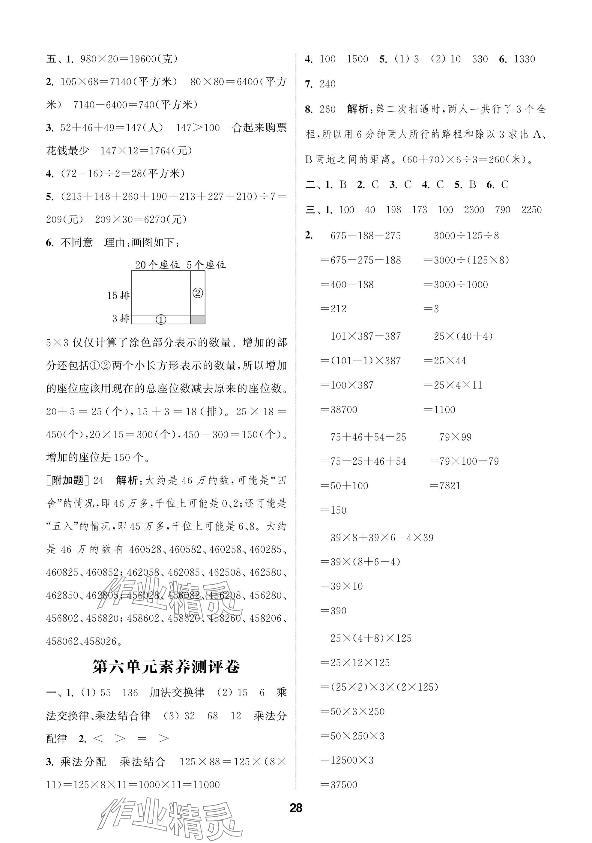 2025年课时作业本阅读与闯关四年级数学下册苏教版第28页