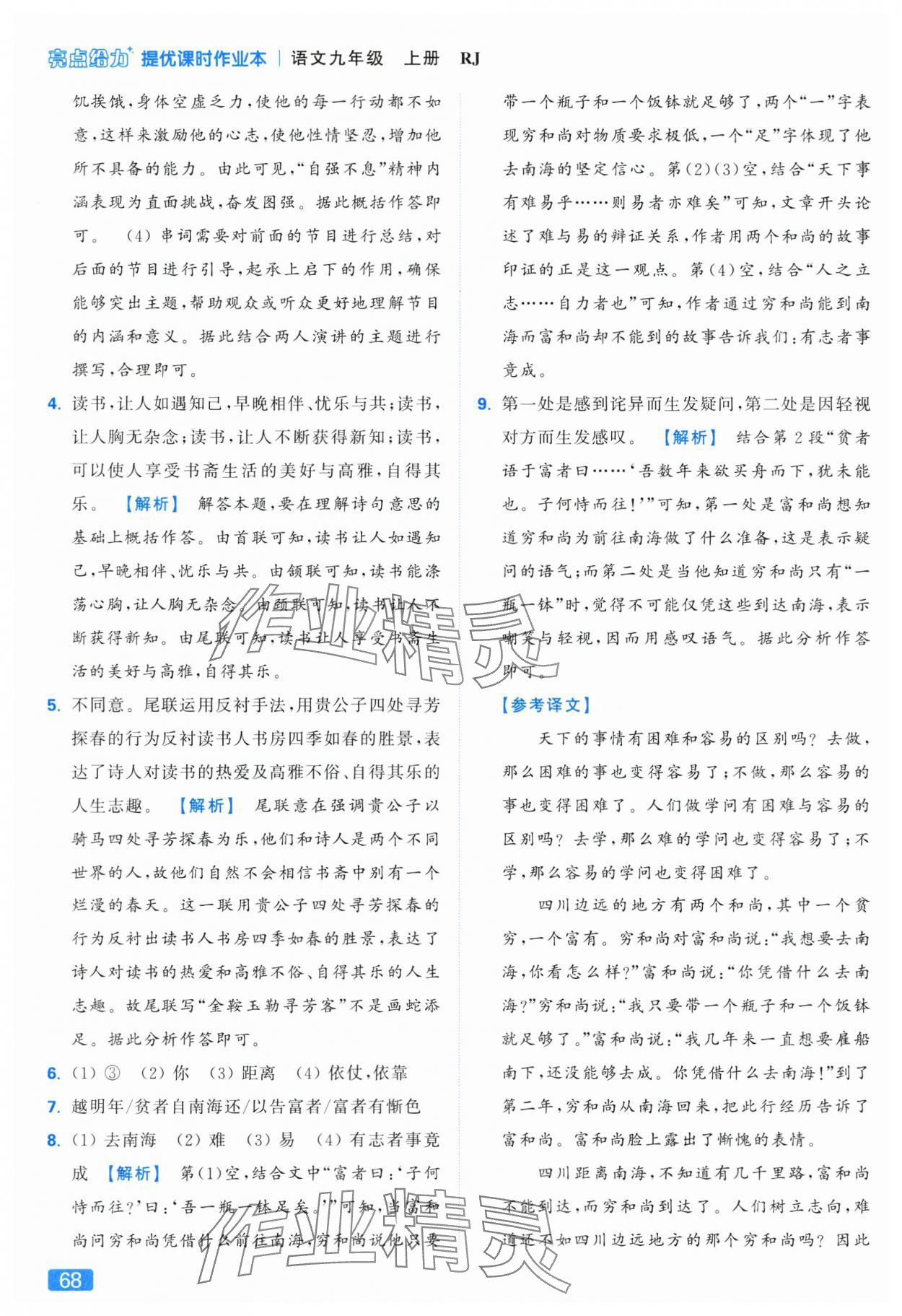 2025年亮点给力提优课时作业本九年级语文上册人教版参考答案第68页
