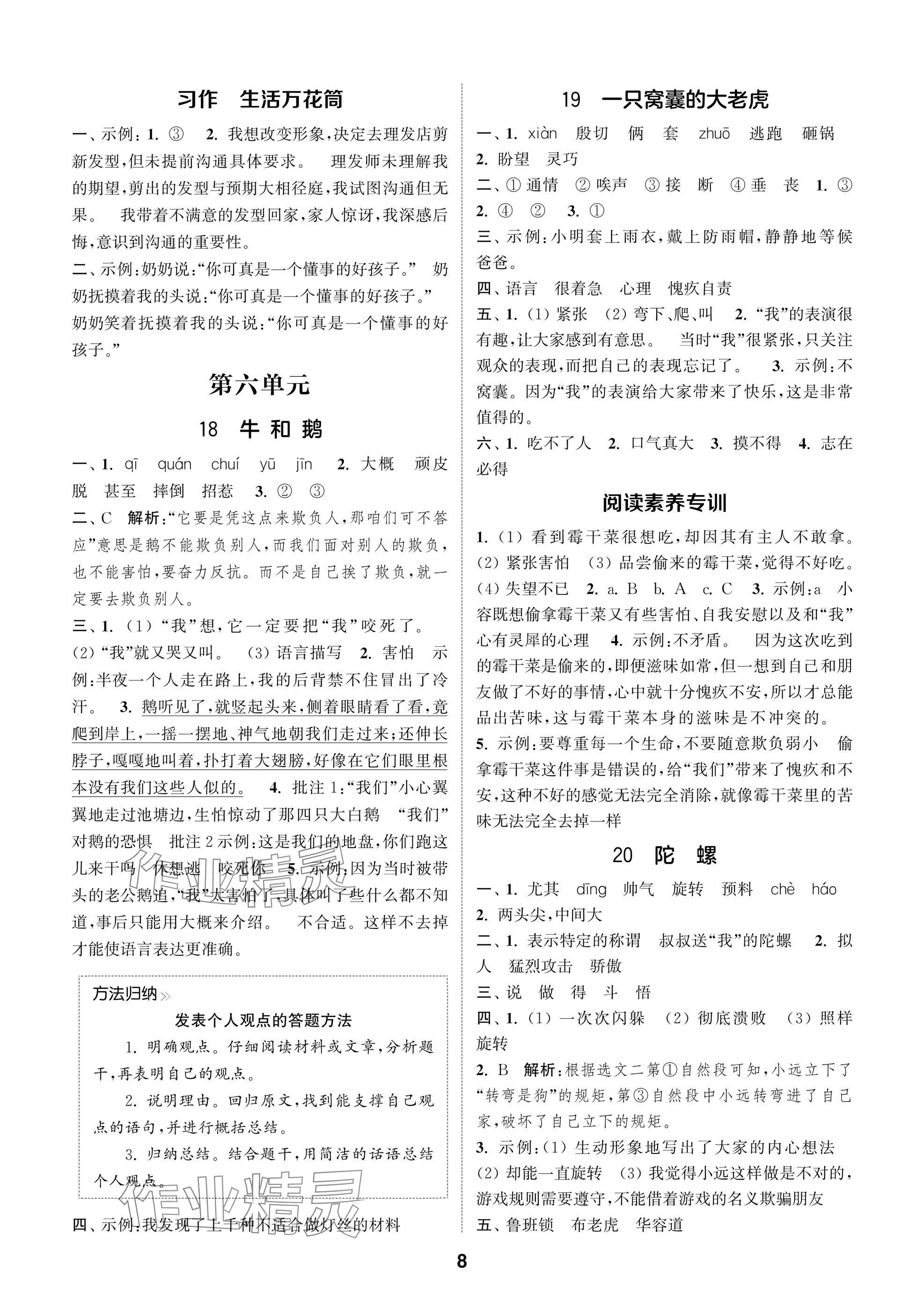 2025年课时作业本闯关练四年级语文上册人教版参考答案第8页