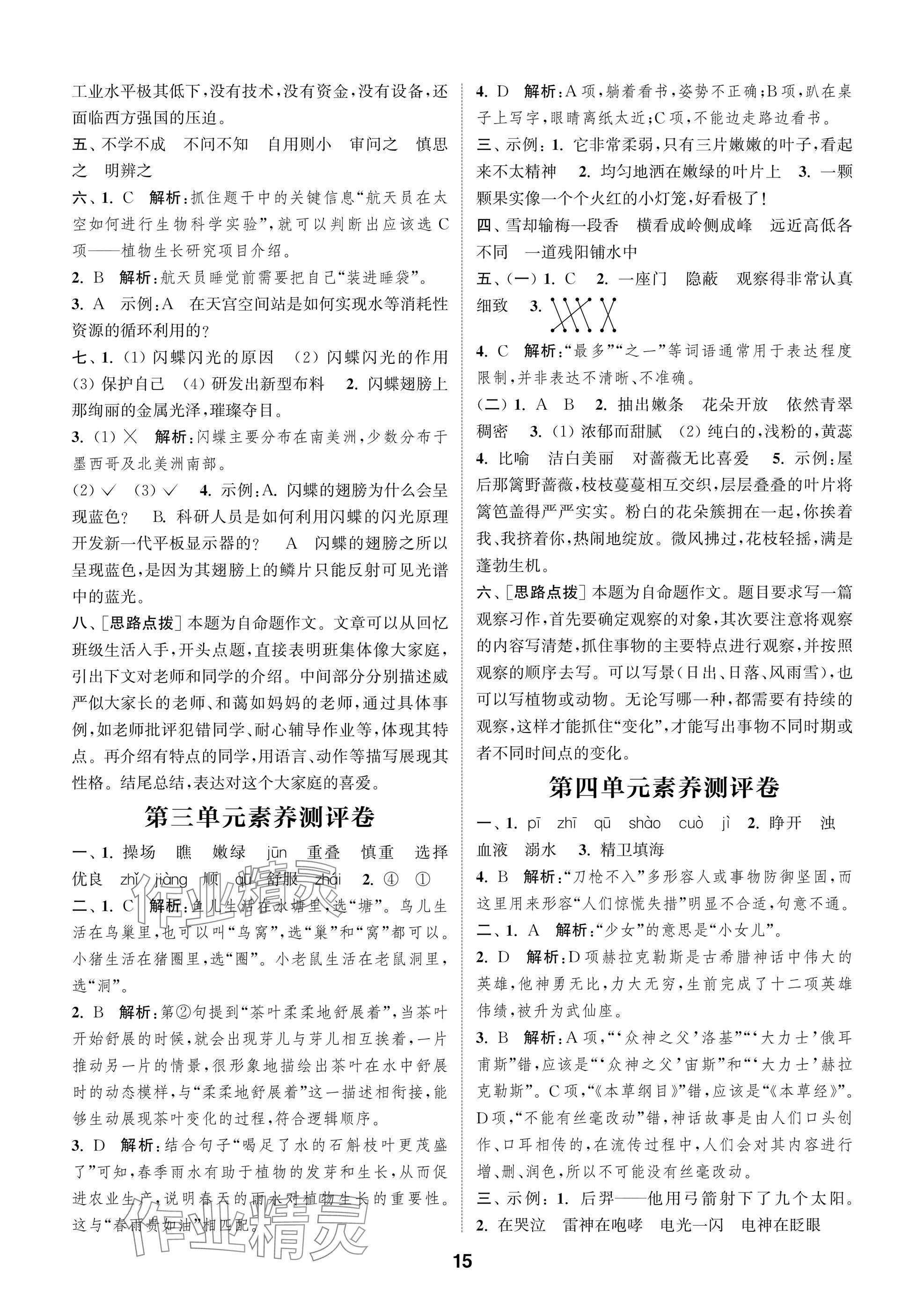 2025年课时作业本闯关练四年级语文上册人教版参考答案第15页