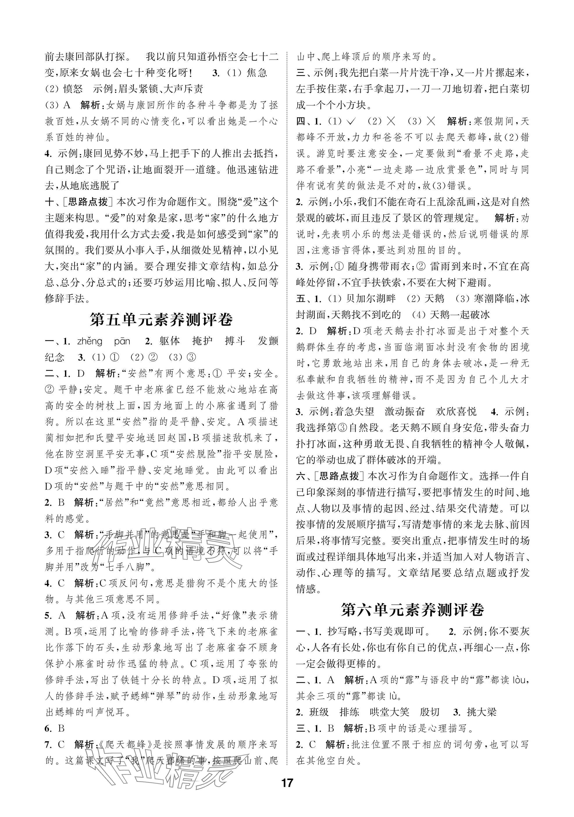 2025年课时作业本闯关练四年级语文上册人教版参考答案第17页