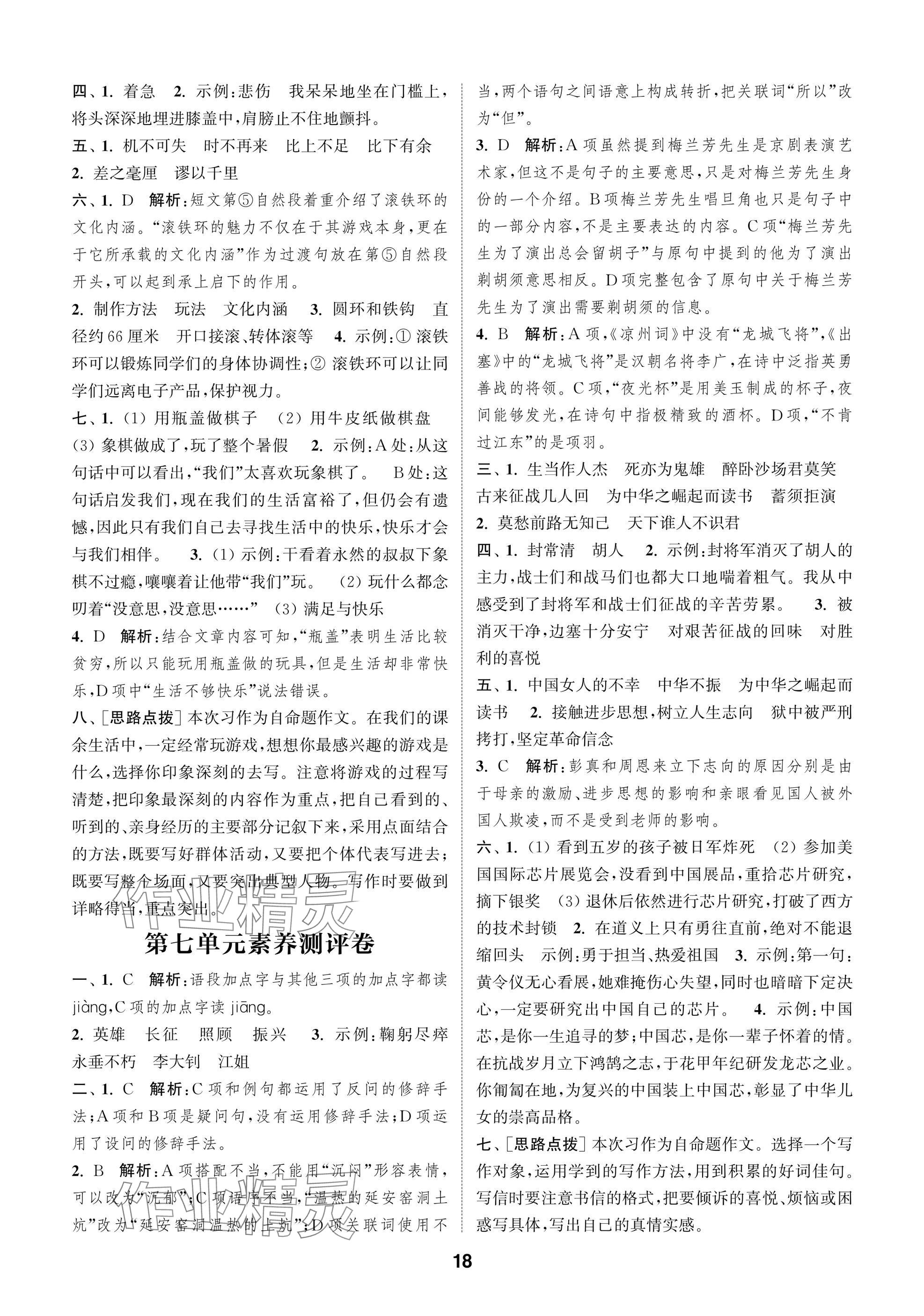 2025年课时作业本闯关练四年级语文上册人教版参考答案第18页
