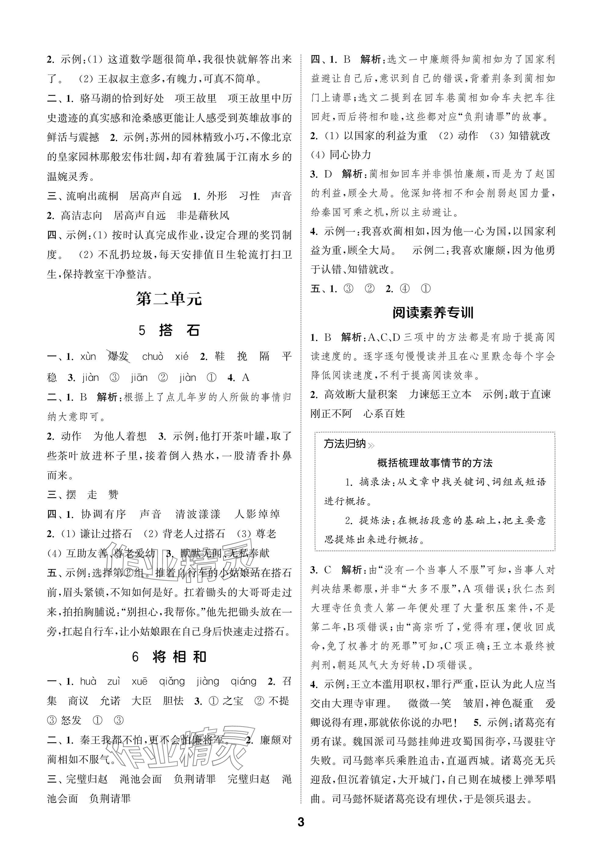 2025年课时作业本闯关练五年级语文上册人教版参考答案第3页