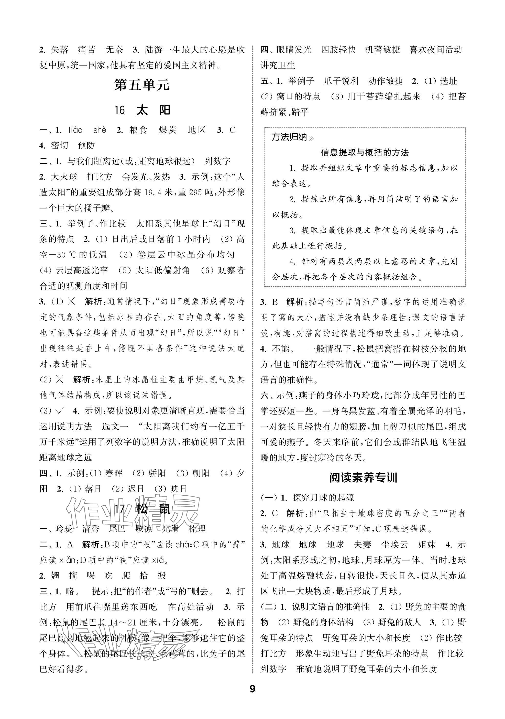 2025年课时作业本闯关练五年级语文上册人教版参考答案第9页