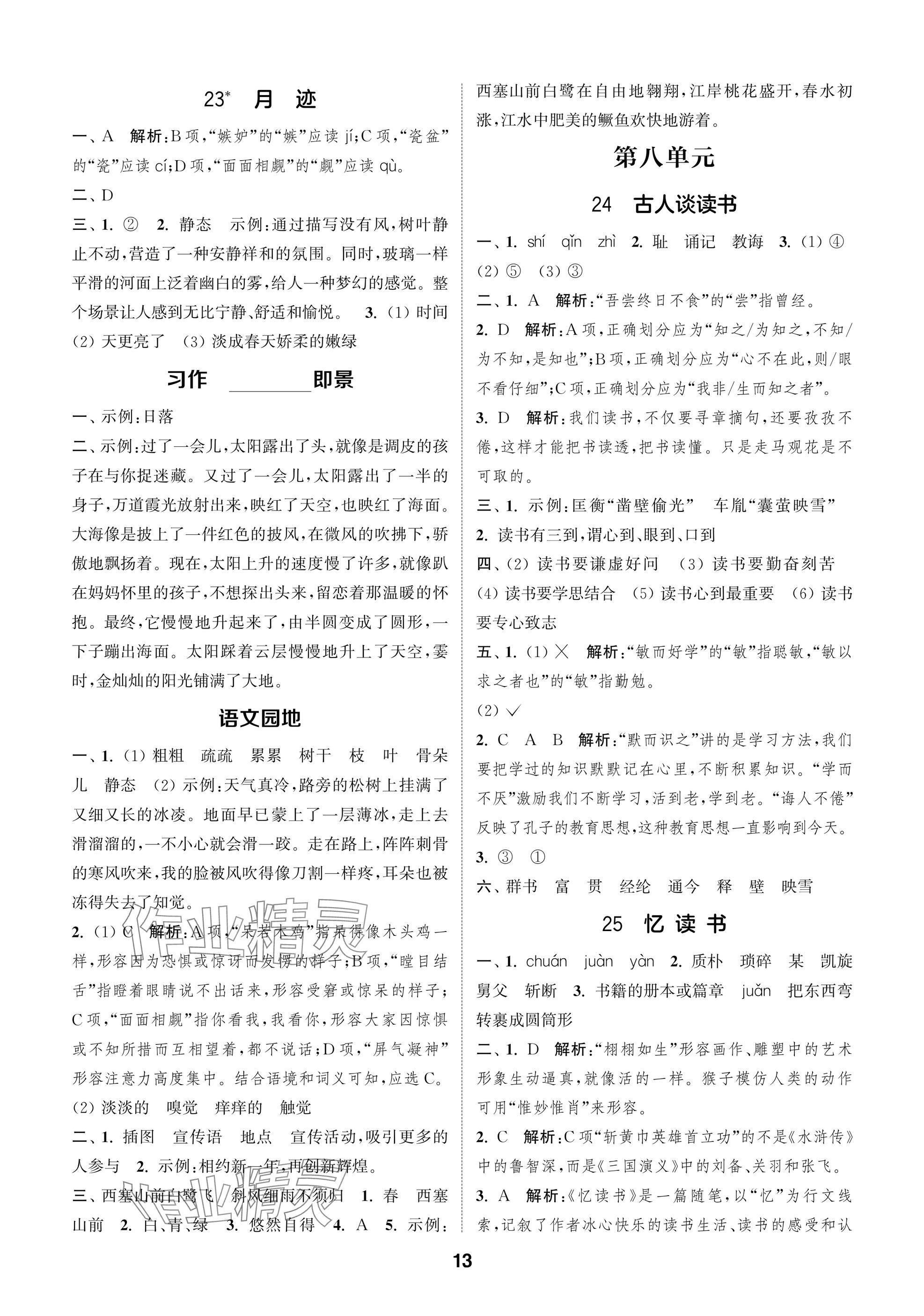2025年课时作业本闯关练五年级语文上册人教版参考答案第13页