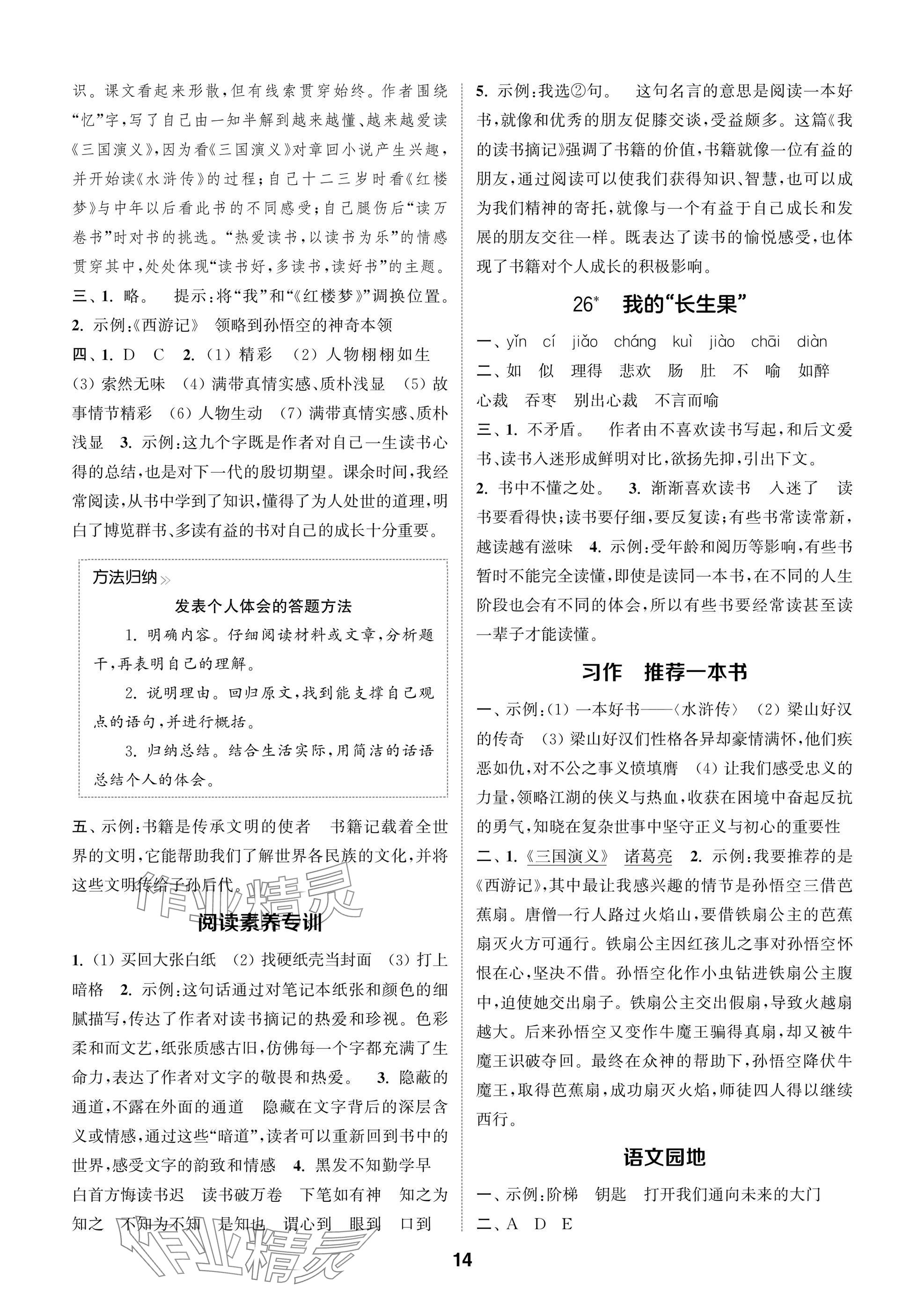 2025年课时作业本闯关练五年级语文上册人教版参考答案第14页