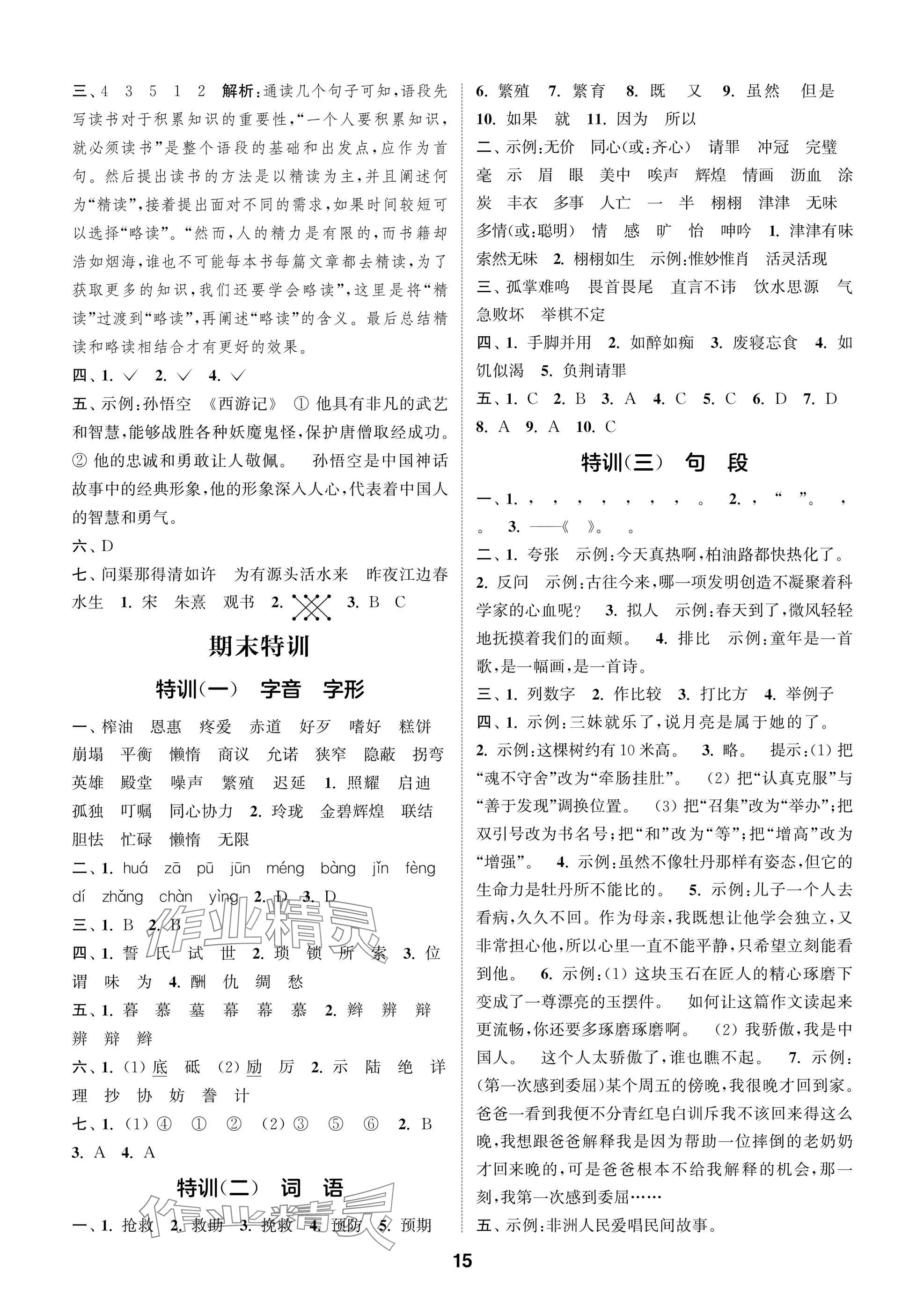 2025年课时作业本闯关练五年级语文上册人教版参考答案第15页