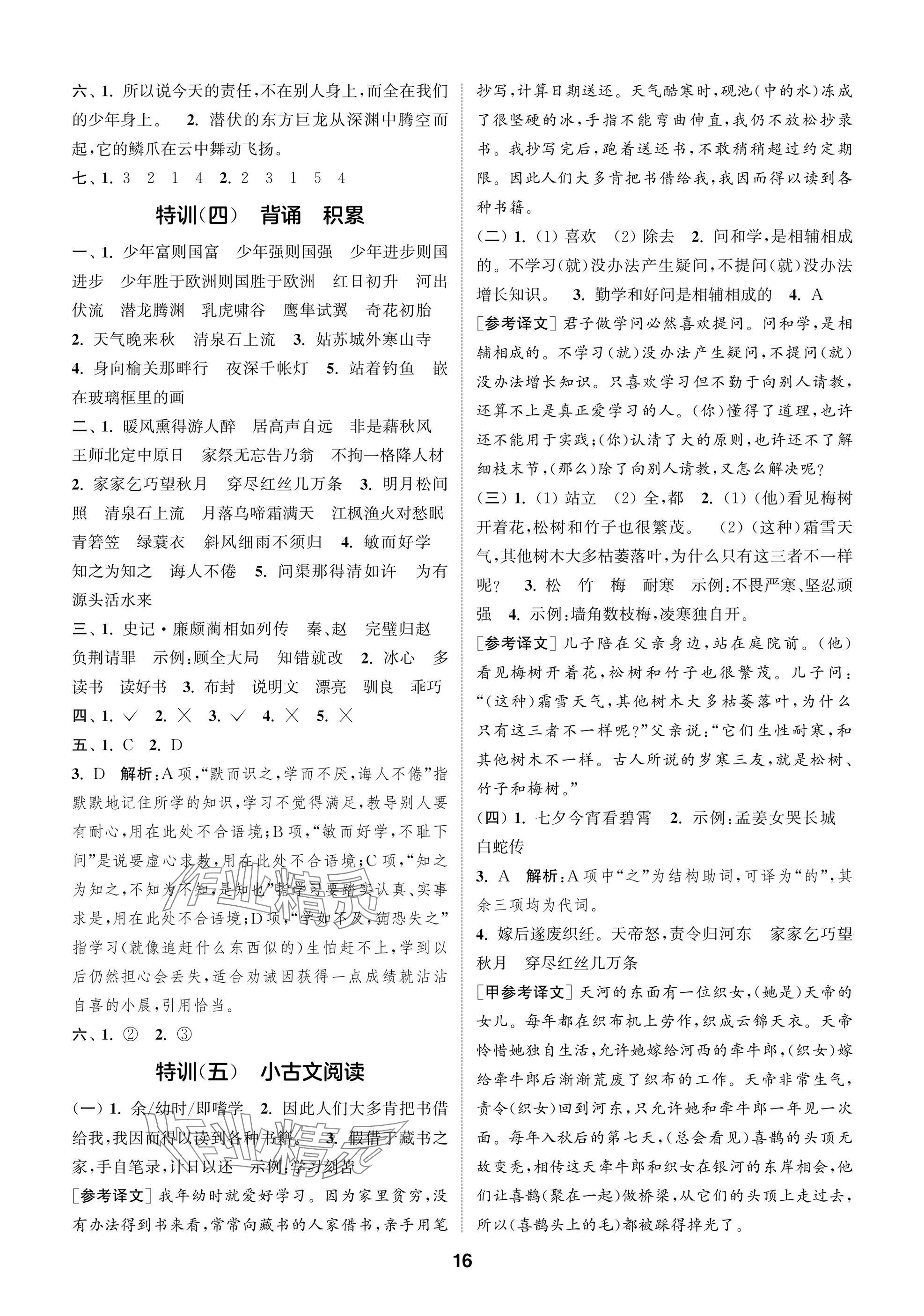 2025年课时作业本闯关练五年级语文上册人教版参考答案第16页
