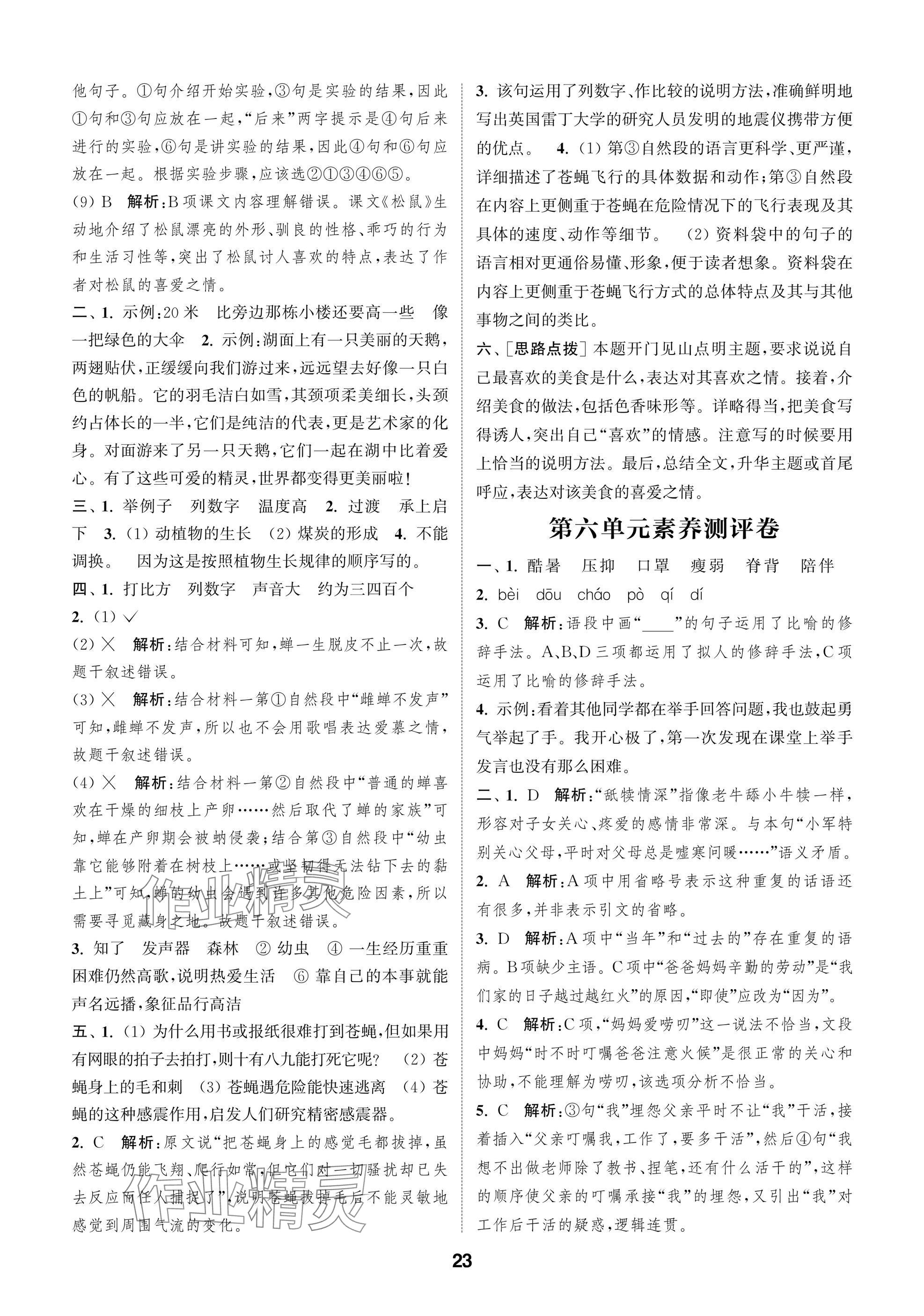 2025年课时作业本闯关练五年级语文上册人教版参考答案第23页